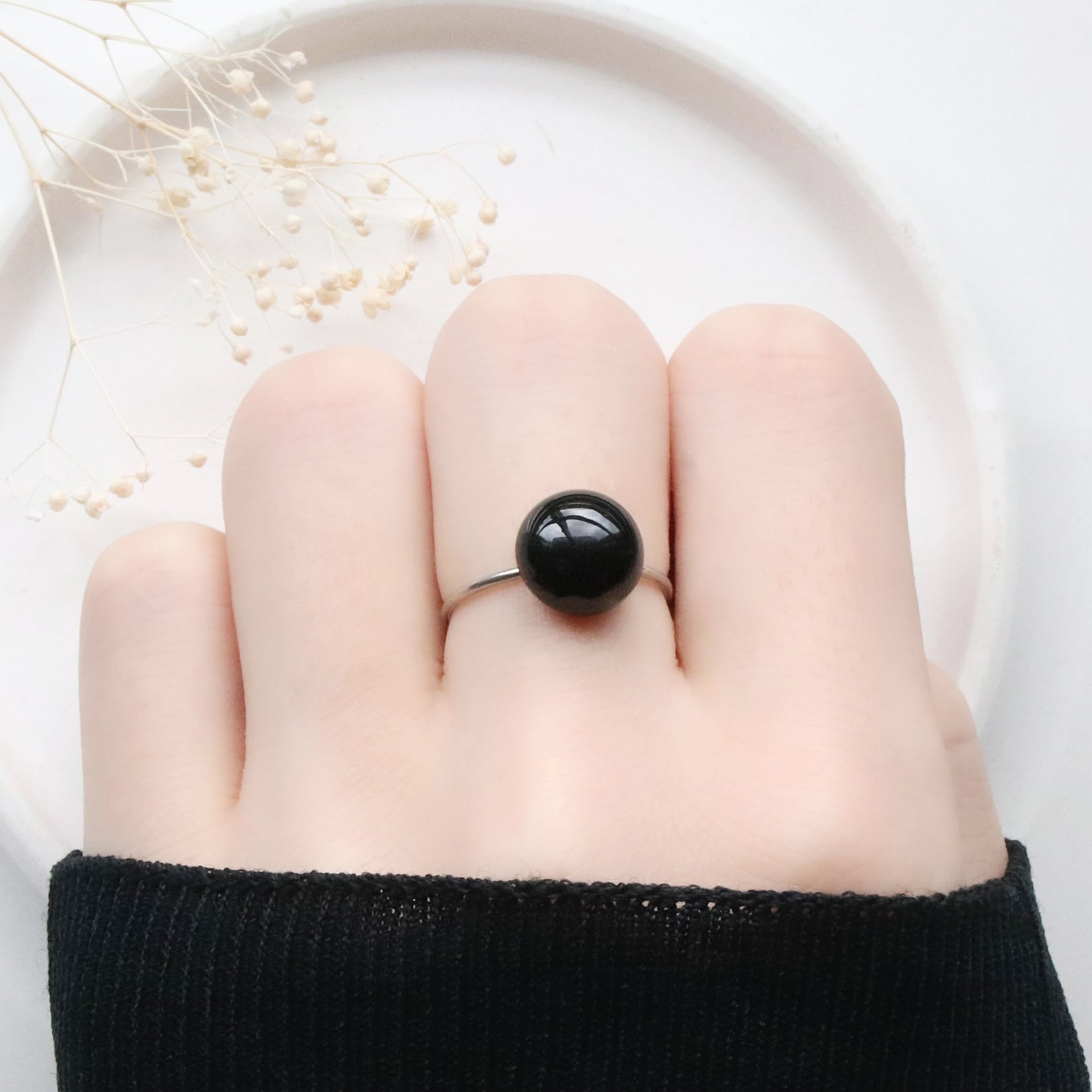 漆黒のブラックオニキスが際立つ、シンプルで存在感のあるリング。