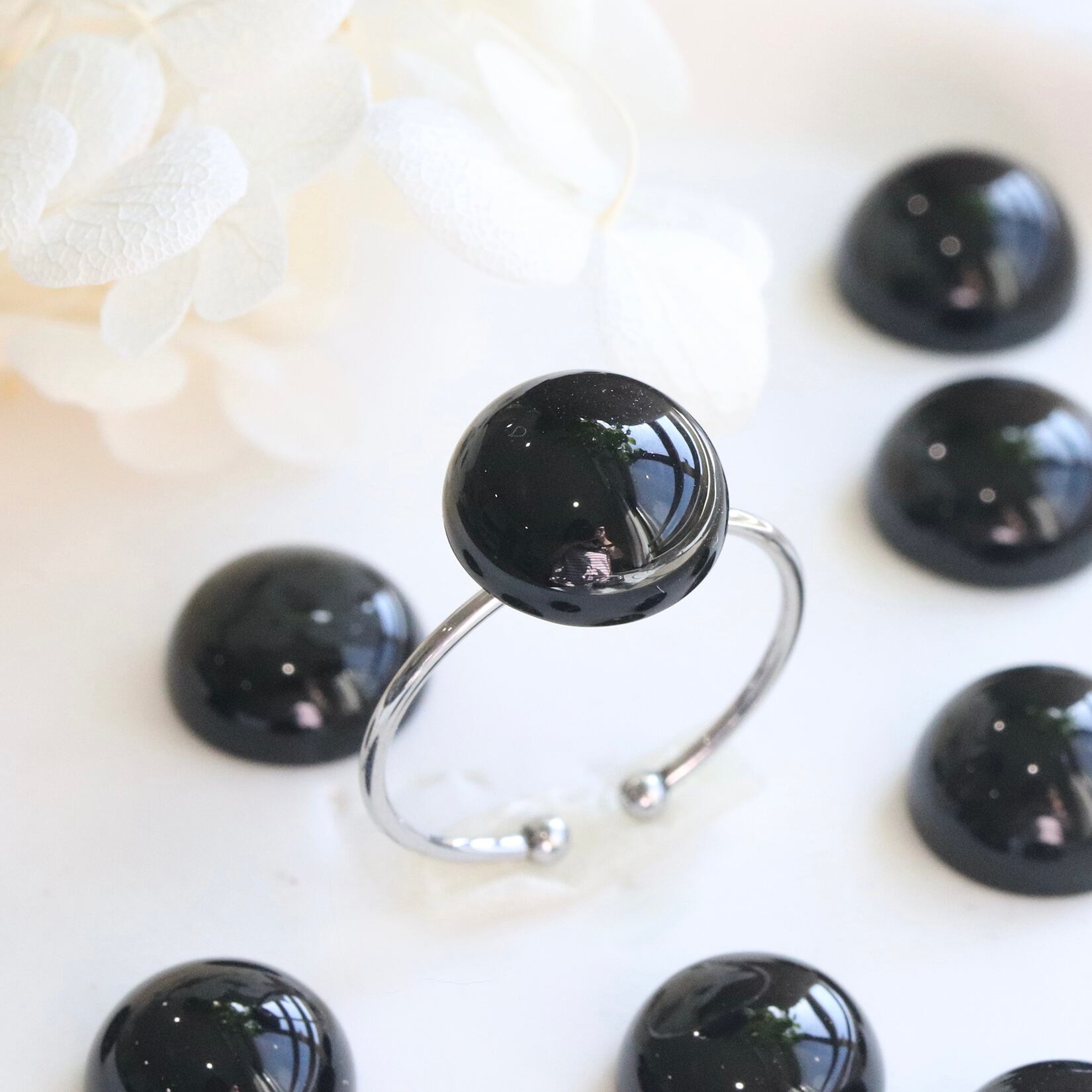 漆黒の一粒◆ 天然石ブラックオニキス フリーサイズリング シルバー/ゴールド ―Cool―