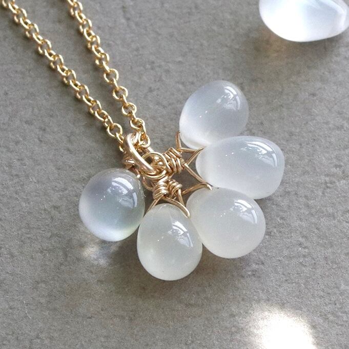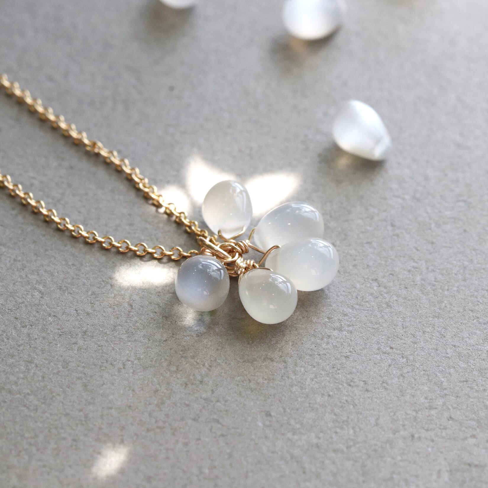 ホワイトムーンストーンのネックレス|華奢 上品 14Kgf 6月誕生石 きれいめ 大人ジュエリー ギフト