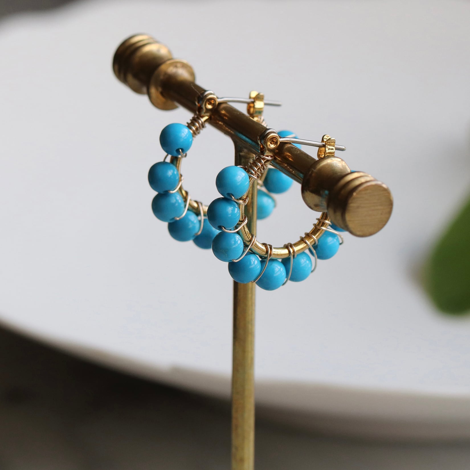 フープピアス ターコイズブルー 夏ピアス 小粒ピアス 天然石フープ フープイヤリング 夏アクセサリー 海アクセサリー リゾートアクセサリー 大人カジュアルピアス 軽いピアス デニムコーデアクセ サマーピアス 青いピアス 揺れないピアス フープアクセサリー プレゼントピアス
