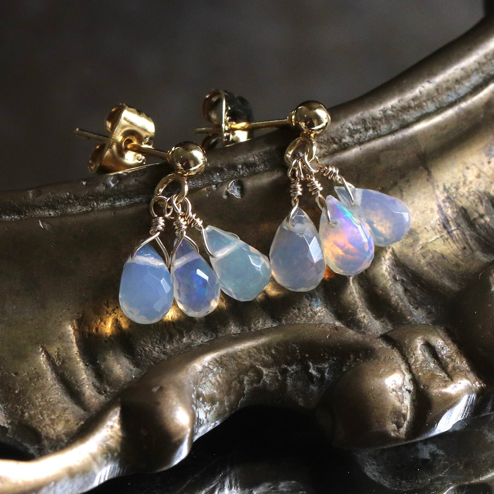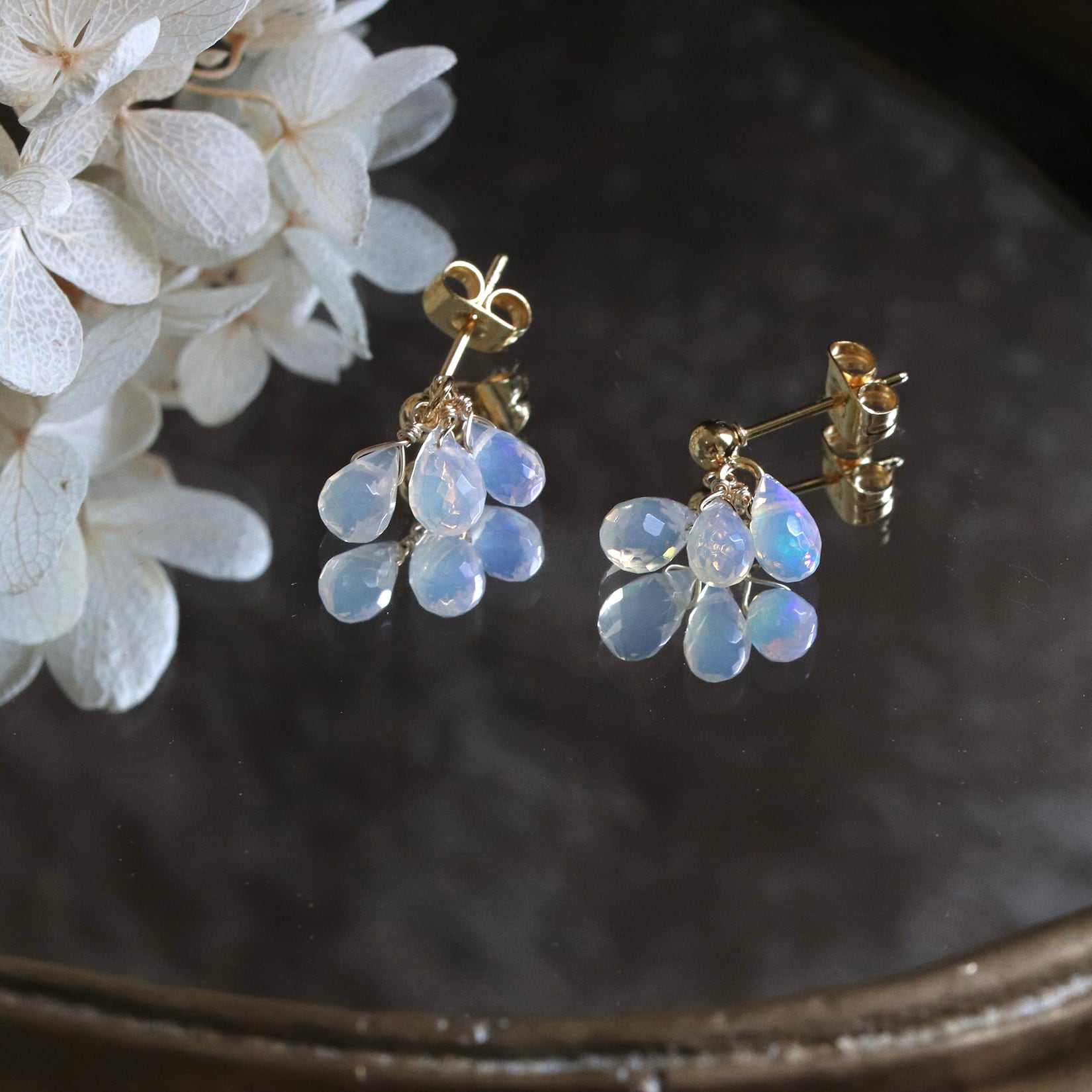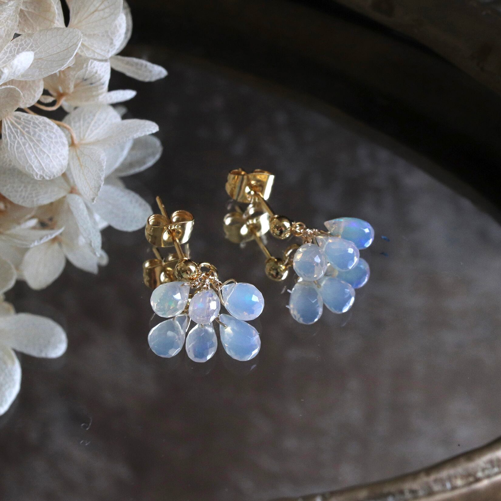 上品なゴールド金具がオパールの透明感を引き立て、
