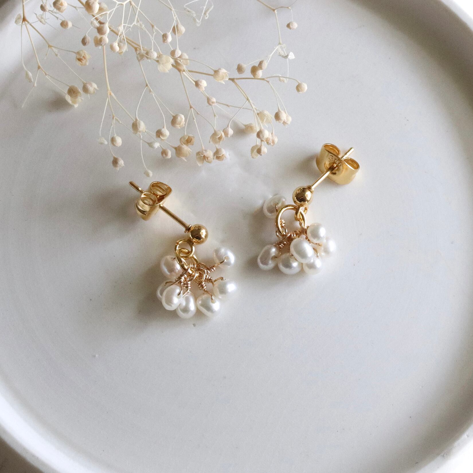 小粒の淡水パールをぎゅっと並べた、上品で愛らしいデザイン。