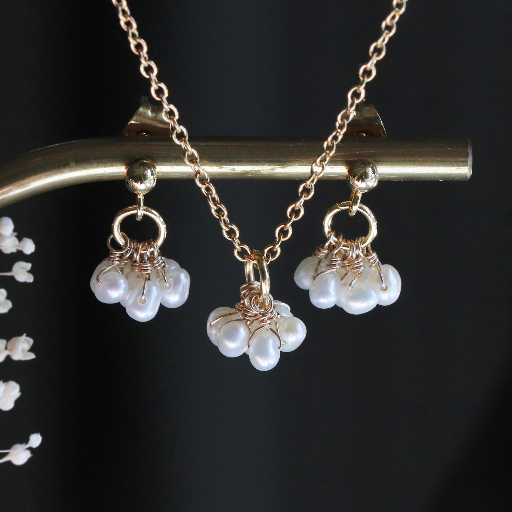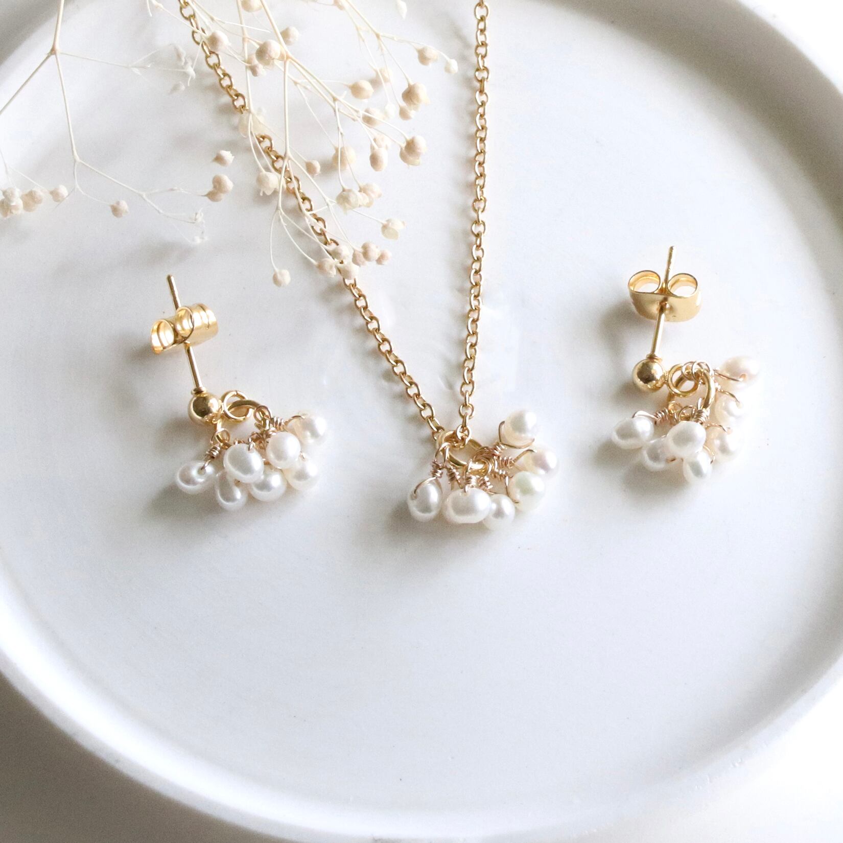 小粒の淡水パールをぎゅっと並べた、上品で愛らしいデザイン。