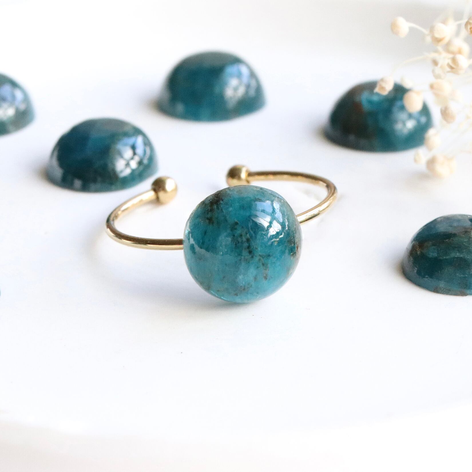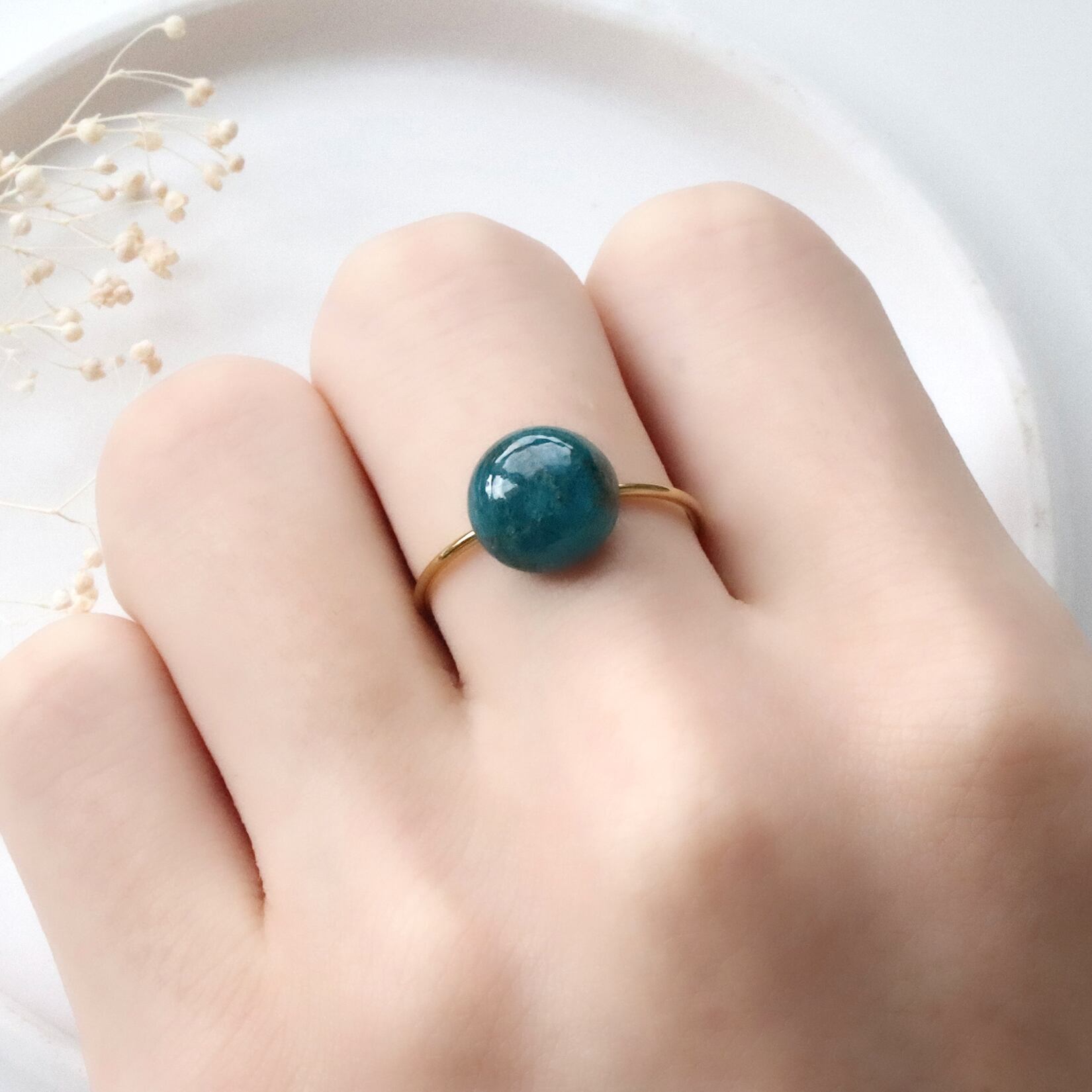 深い青みグリーンのアパタイト一粒フリーリング|天然石リング|ゴールド/シルバー|秋冬も夏も--Teal Green--