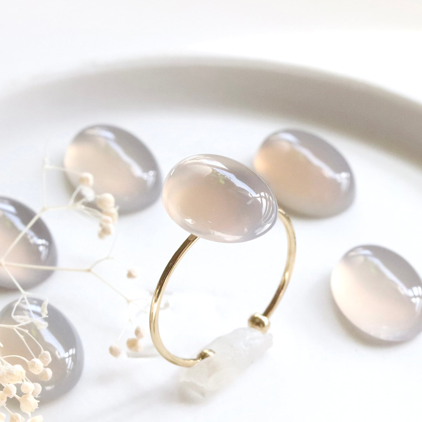 大粒グレーオニキスのフリーリング シックで洗練された手元に ゴールド/シルバー ー Elegant in Gray ー
