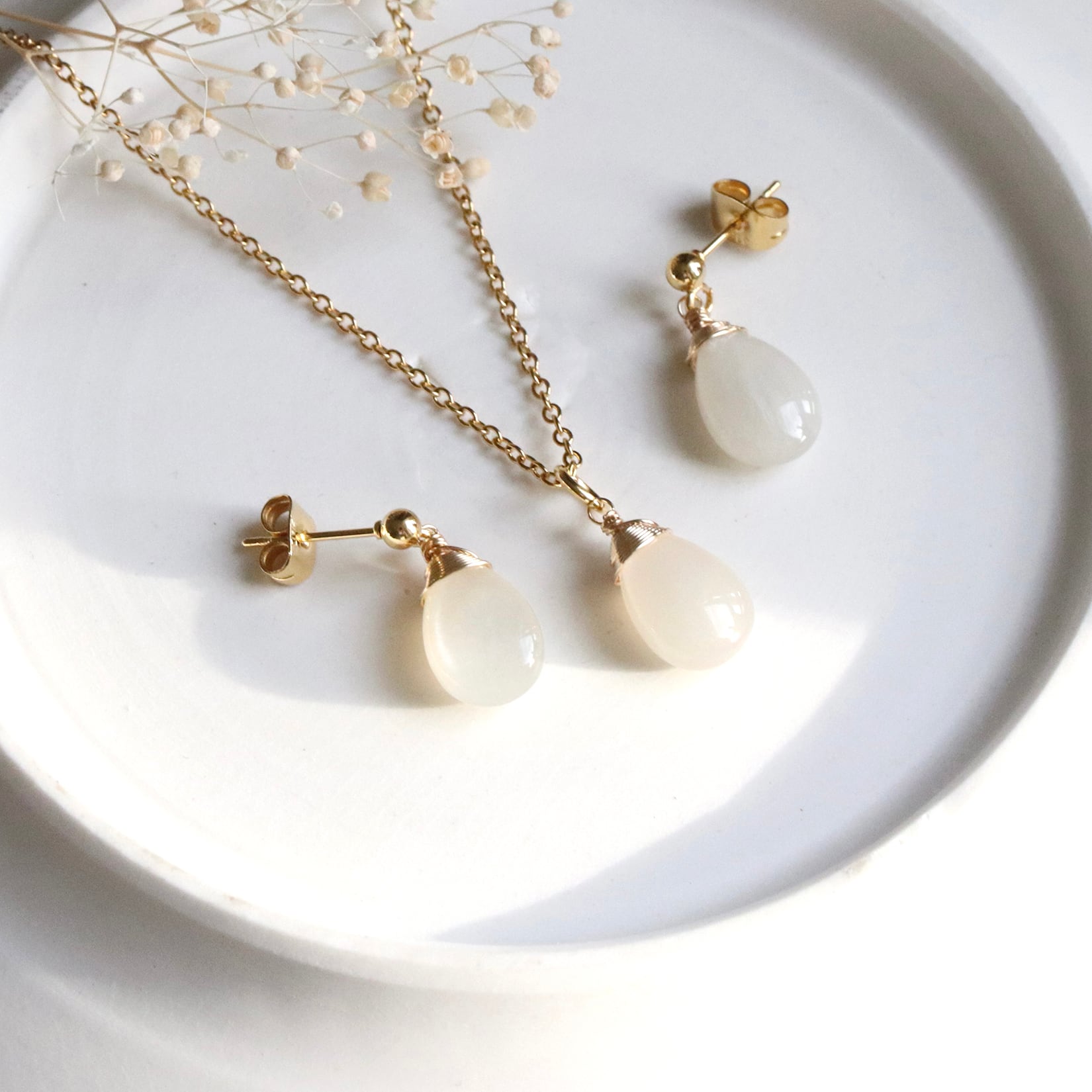 【新春福袋2026】月光のホワイトムーンストーン ピアス&ネックレスセット|天然石|サージカルステンレス —Moonl