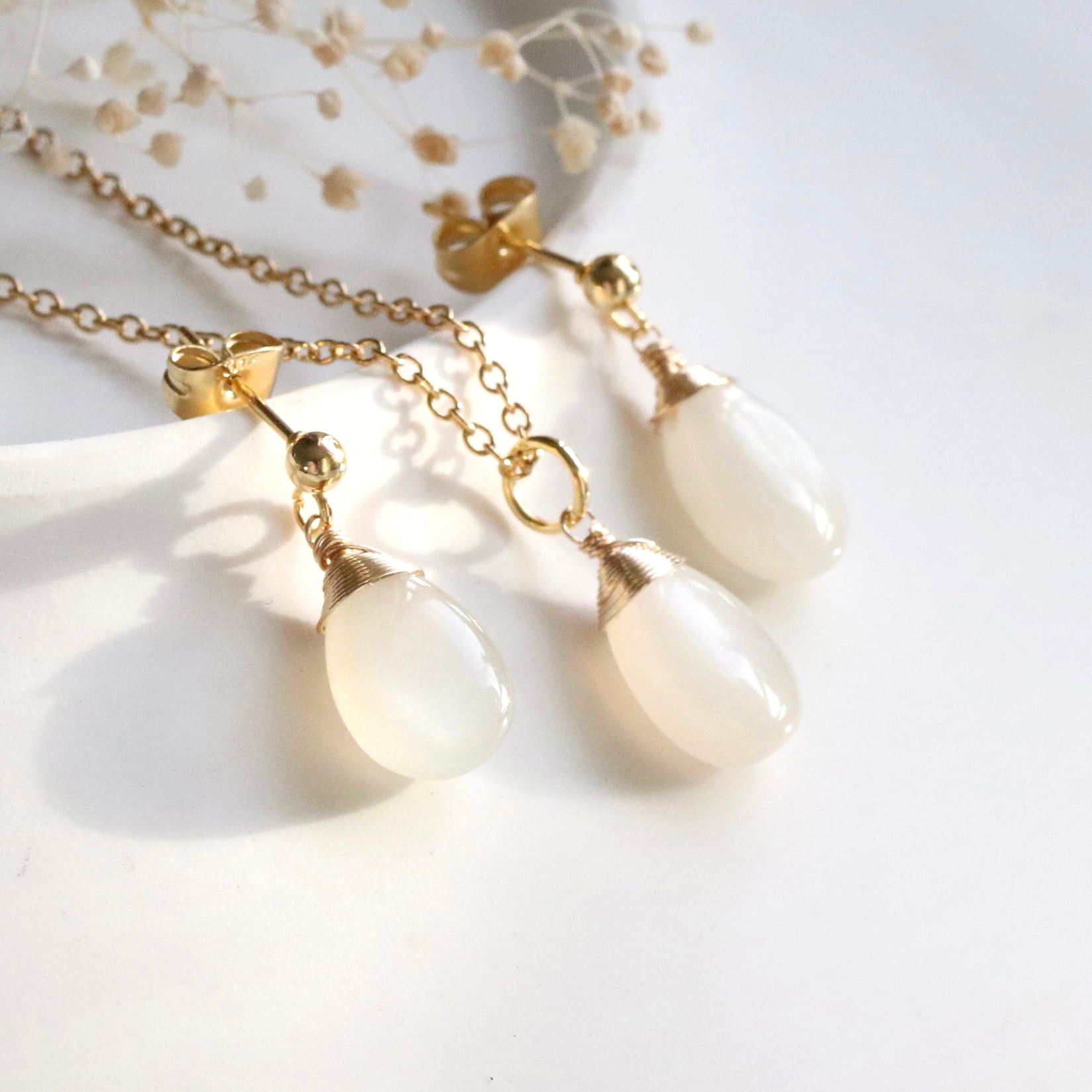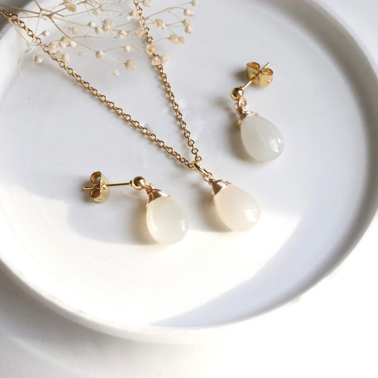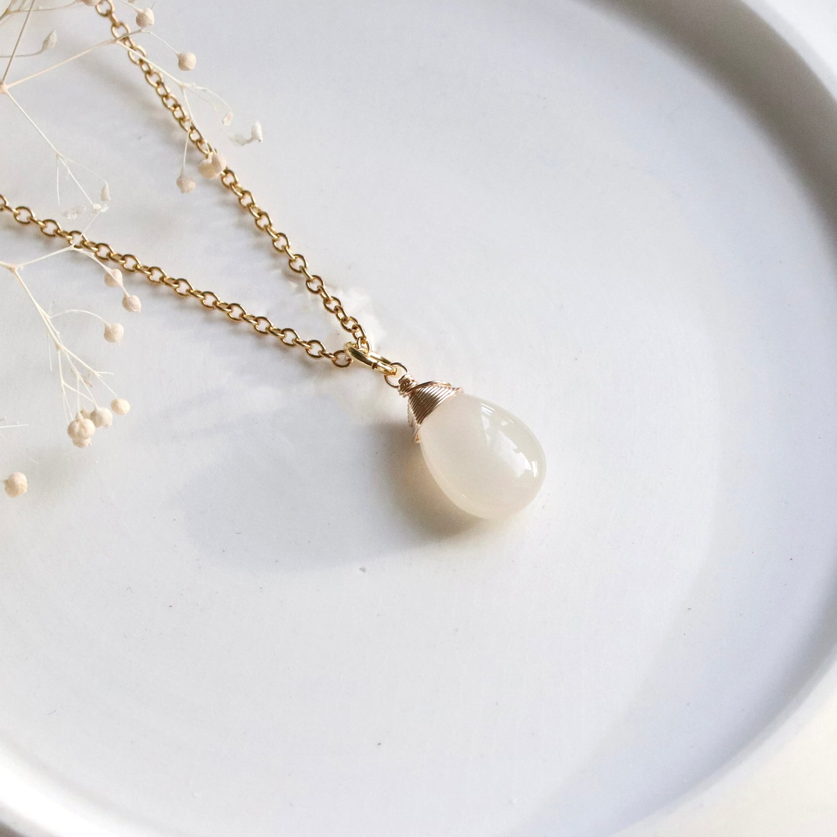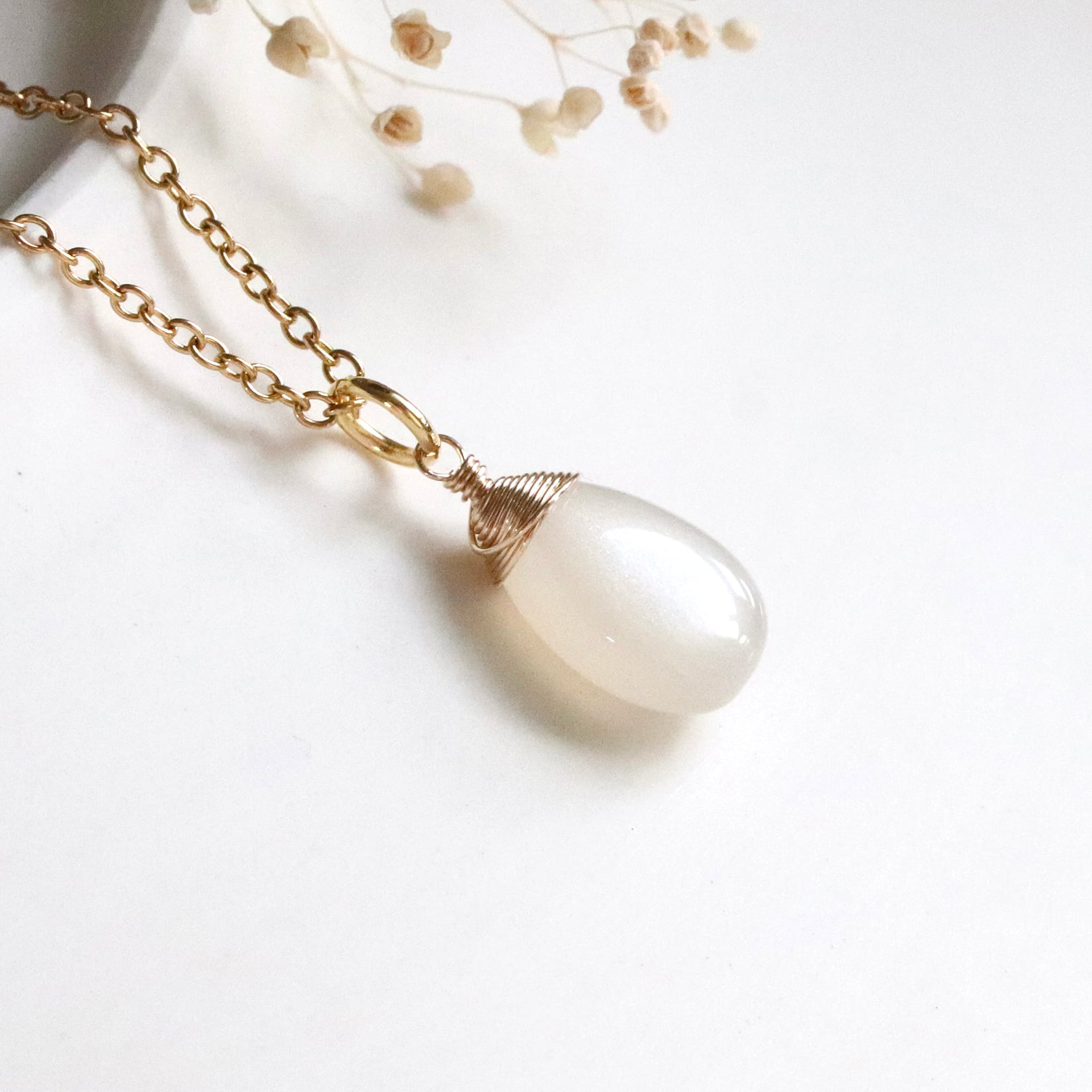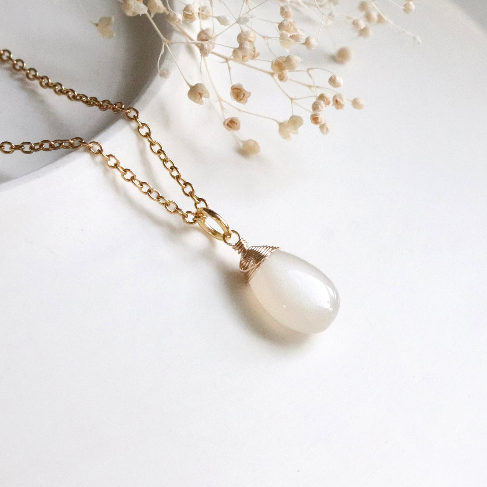月光のホワイトムーンストーン ネックレス|天然石|サージカルステンレス —Moonlight—