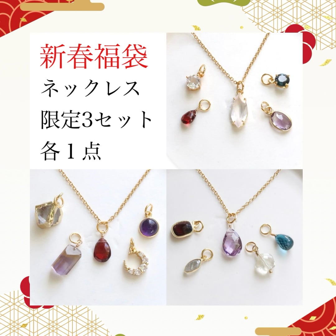 新春福袋2026|チャーム5点 着せ替えネックレスセット|天然石|サージカルステンレス|数量限定