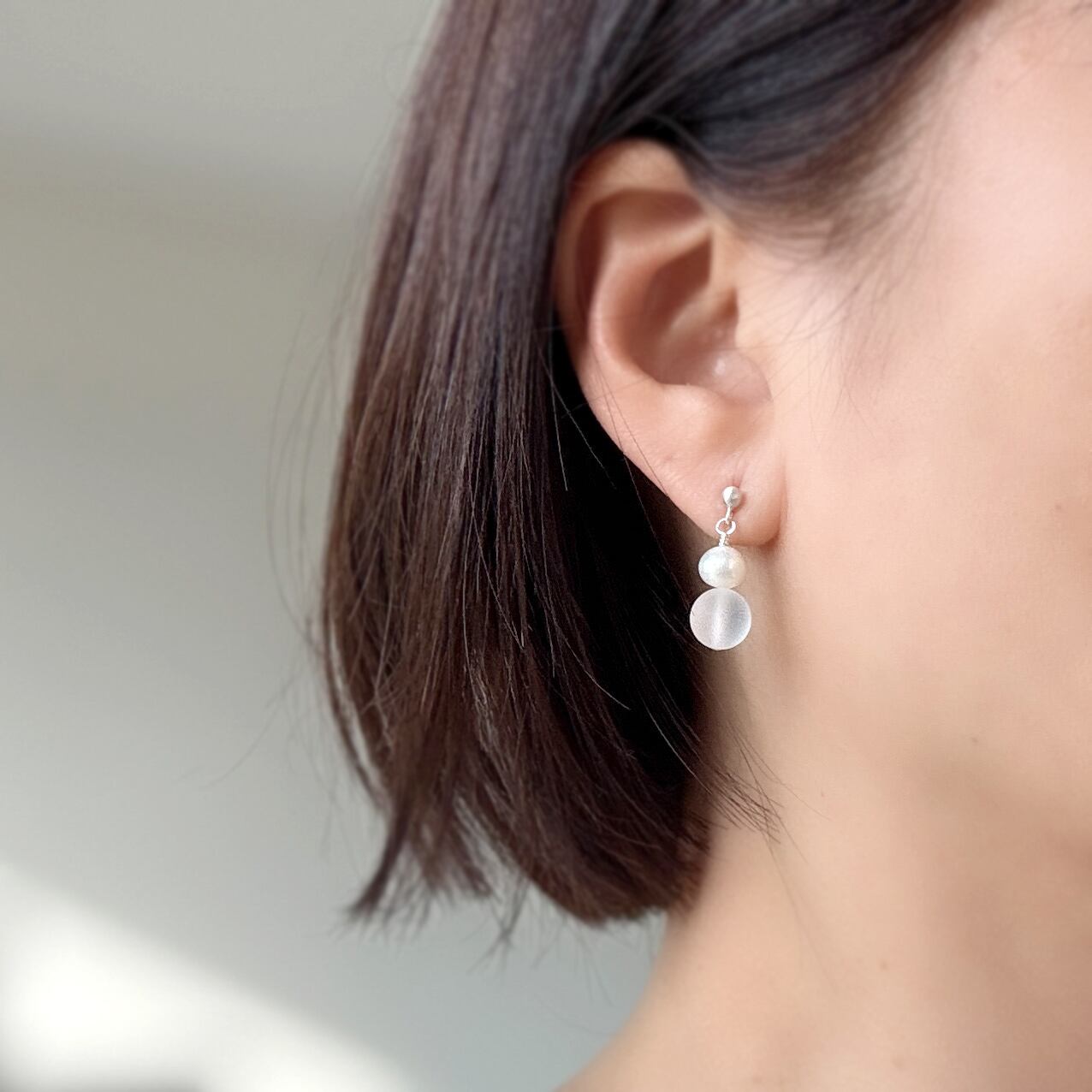 Silver925 淡水パール×フロストクォーツ ピアス/イヤリング ーPowder Snowー