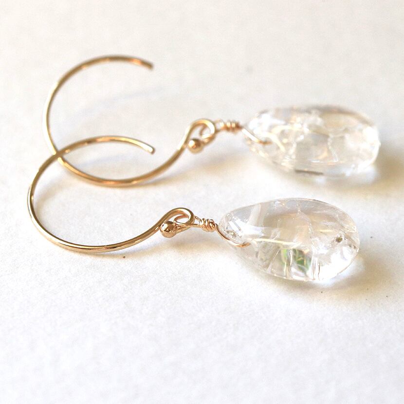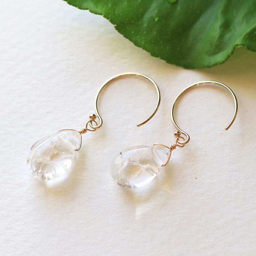 水晶 クラッククリスタルのしずくピアス|透明感が美しい大人の天然石ピアス|14Kgf ー After the rain