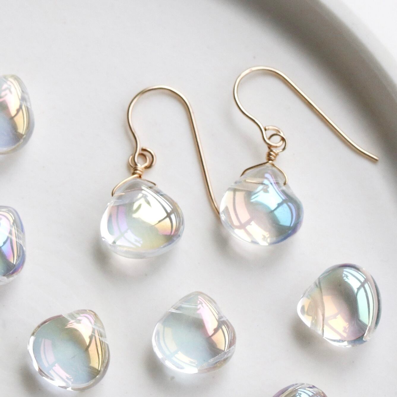透明感 オーロラクリスタル ピアス|虹色 水晶 上品 小ぶり 14Kgf 金属アレルギー対応 — Soap bubbles ー