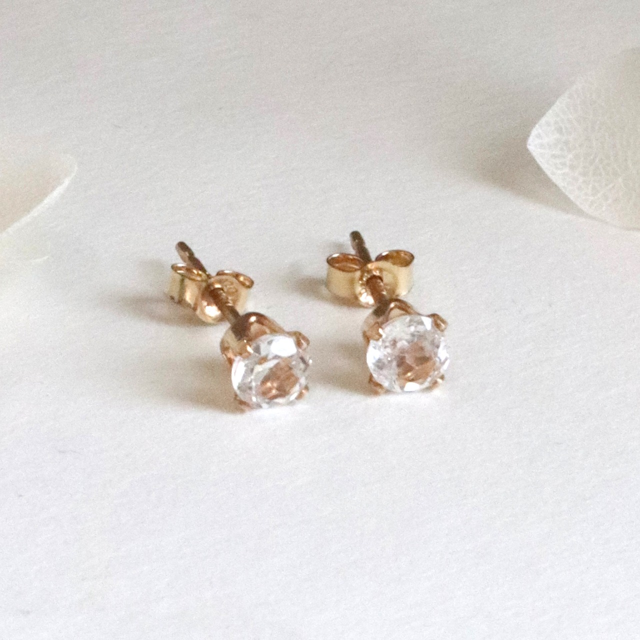 【11月誕生石】ホワイトトパーズ4mm 1粒 14Kgfスタッドピアス --Birth stone--