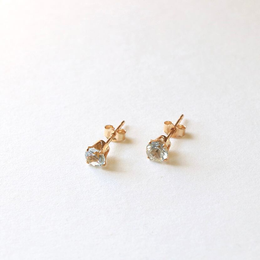 3月誕生石 アクアマリン 一粒スタッドピアス|小さな天然石 アレルギー対応 ギフトにも ー Birth stone ー