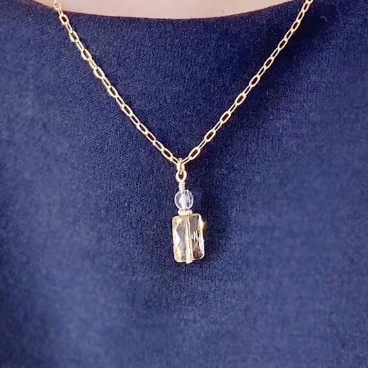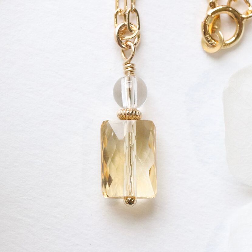 宝石質シトリン 香水瓶ネックレス|14Kgf|天然石シトリン レクタングルカット|11月誕生石 ー Perfume ー