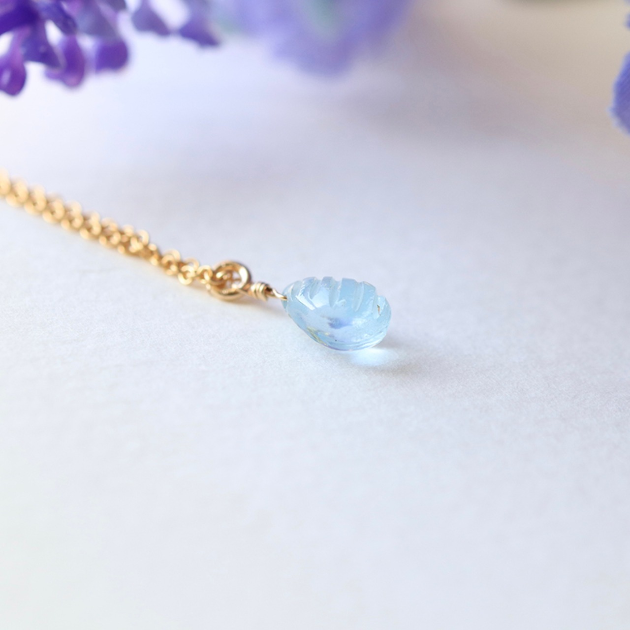 14Kgf 宝石質スカイブルートパーズ しましま彫刻入り ネックレス --Happiness carve--