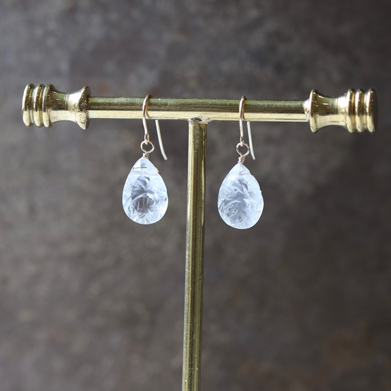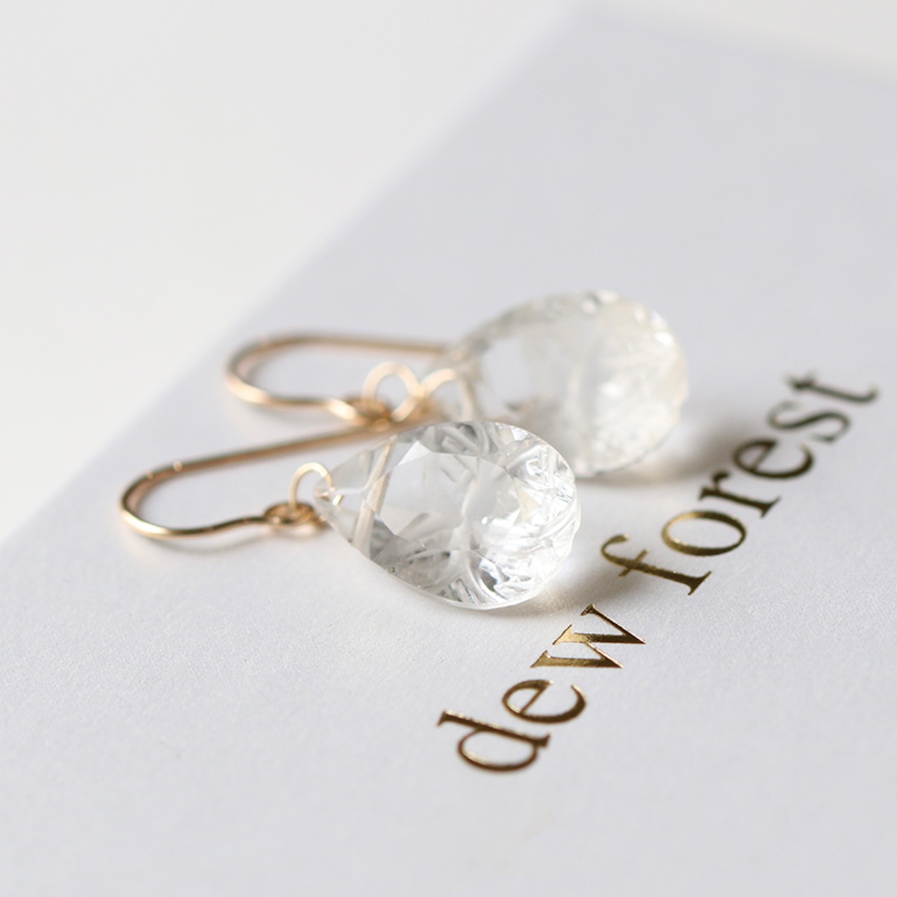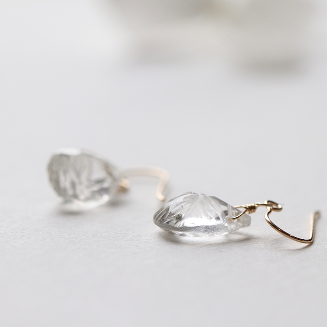 宝石質 ブラジル産クリスタルクォーツのカービングピアス