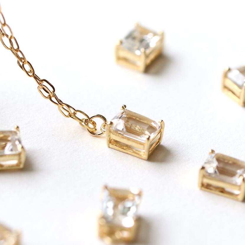 透明感のある良質な粒とすっきりとしたレクタングルの形が胸元に輝きます。