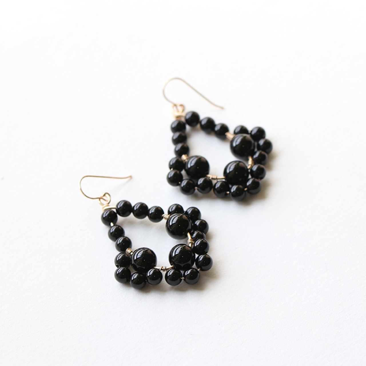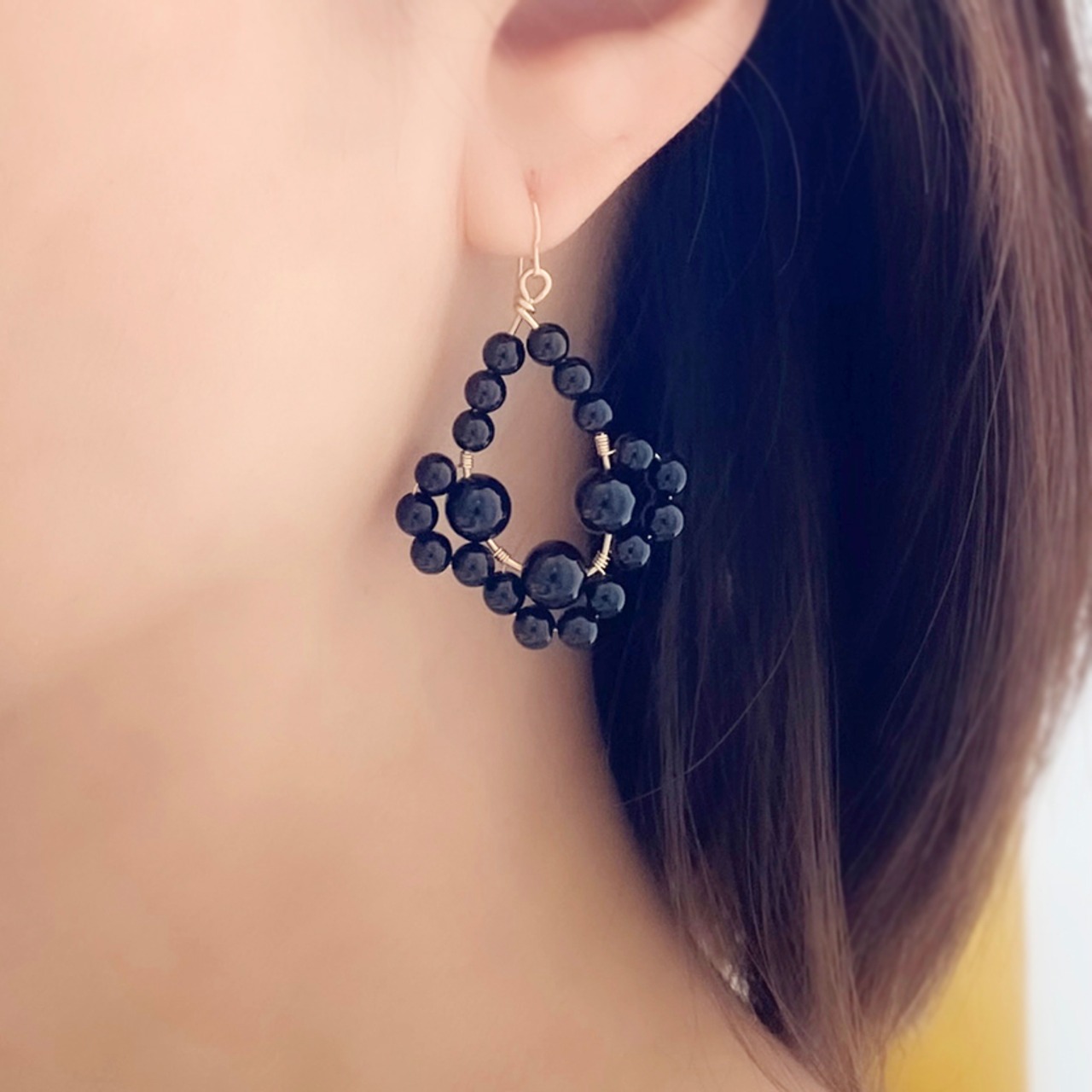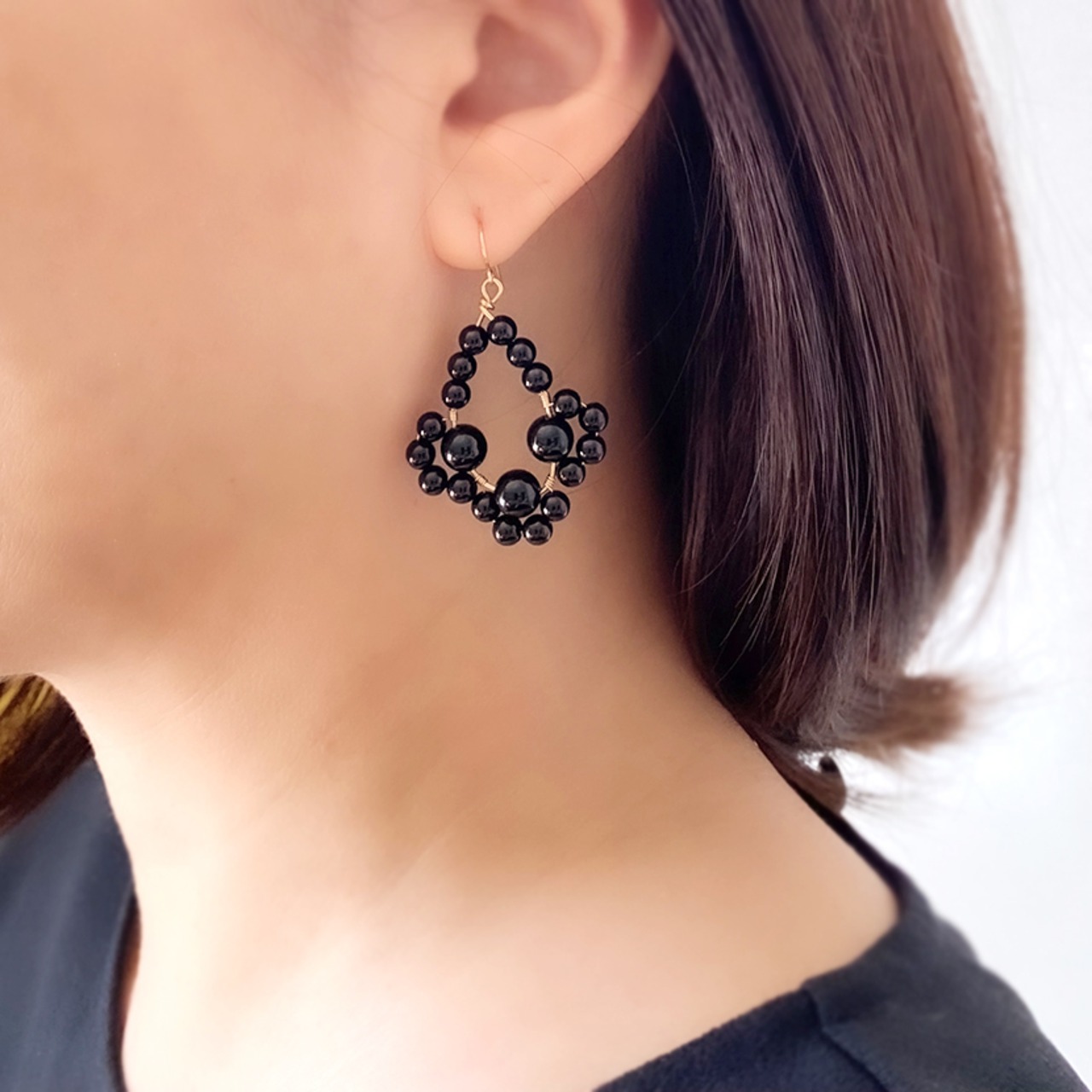 天然石オニキス 黒レース 14Kgf ピアス/イヤリング --Graceful Lace--