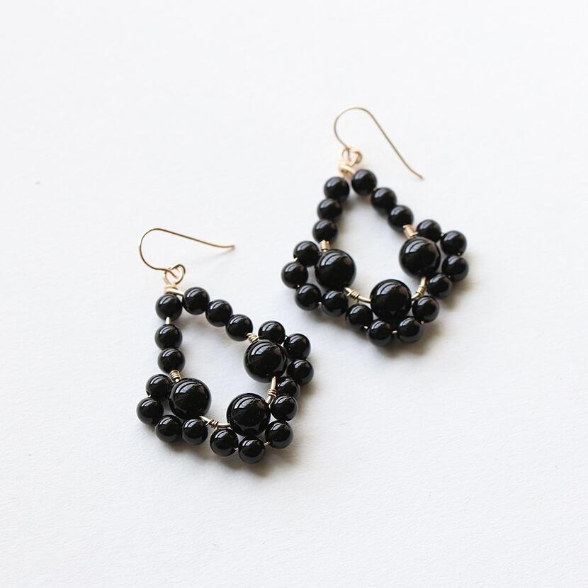 オニキスの揺れるピアス|上品ブラックアクセサリー 14Kgf イヤリング対応| Graceful Lace