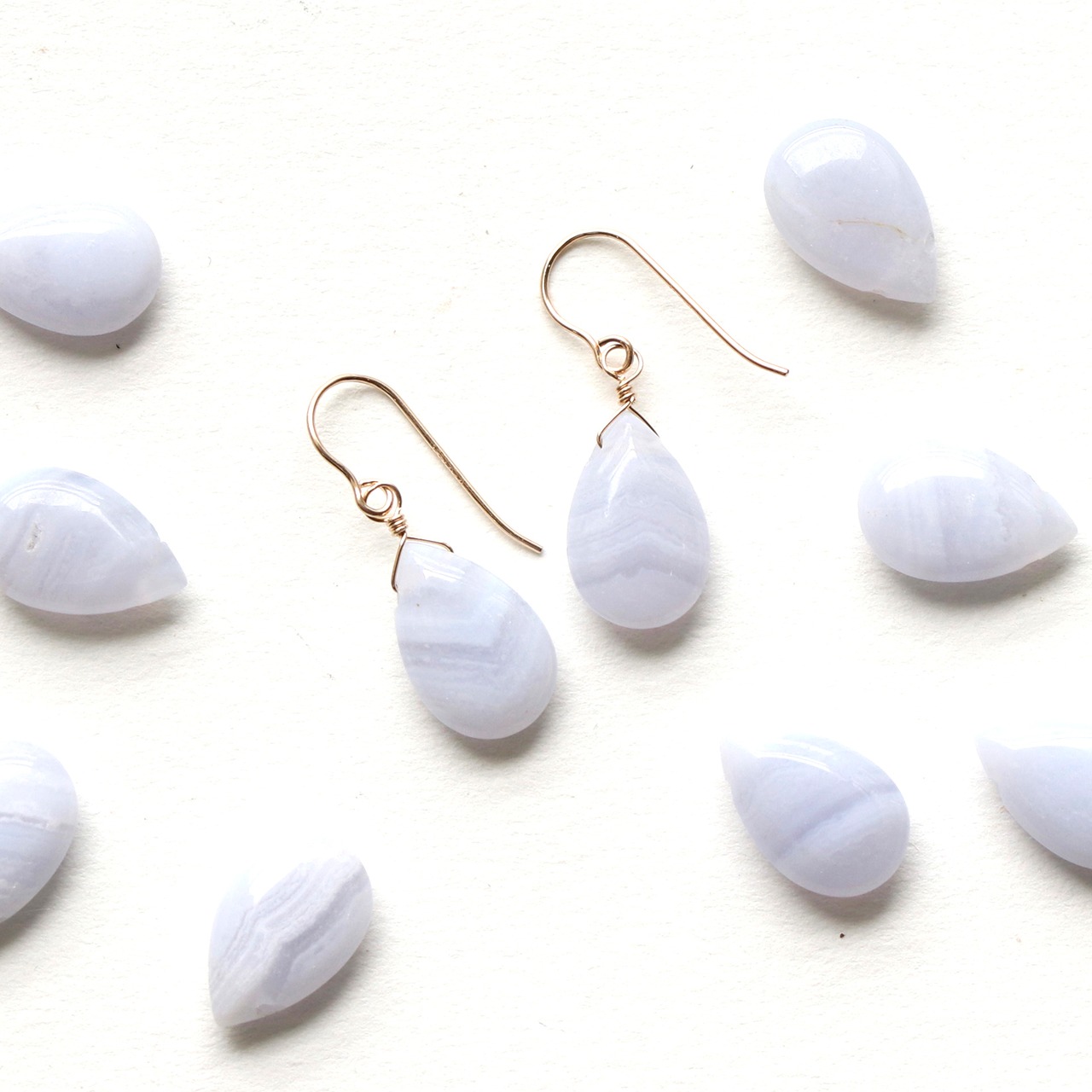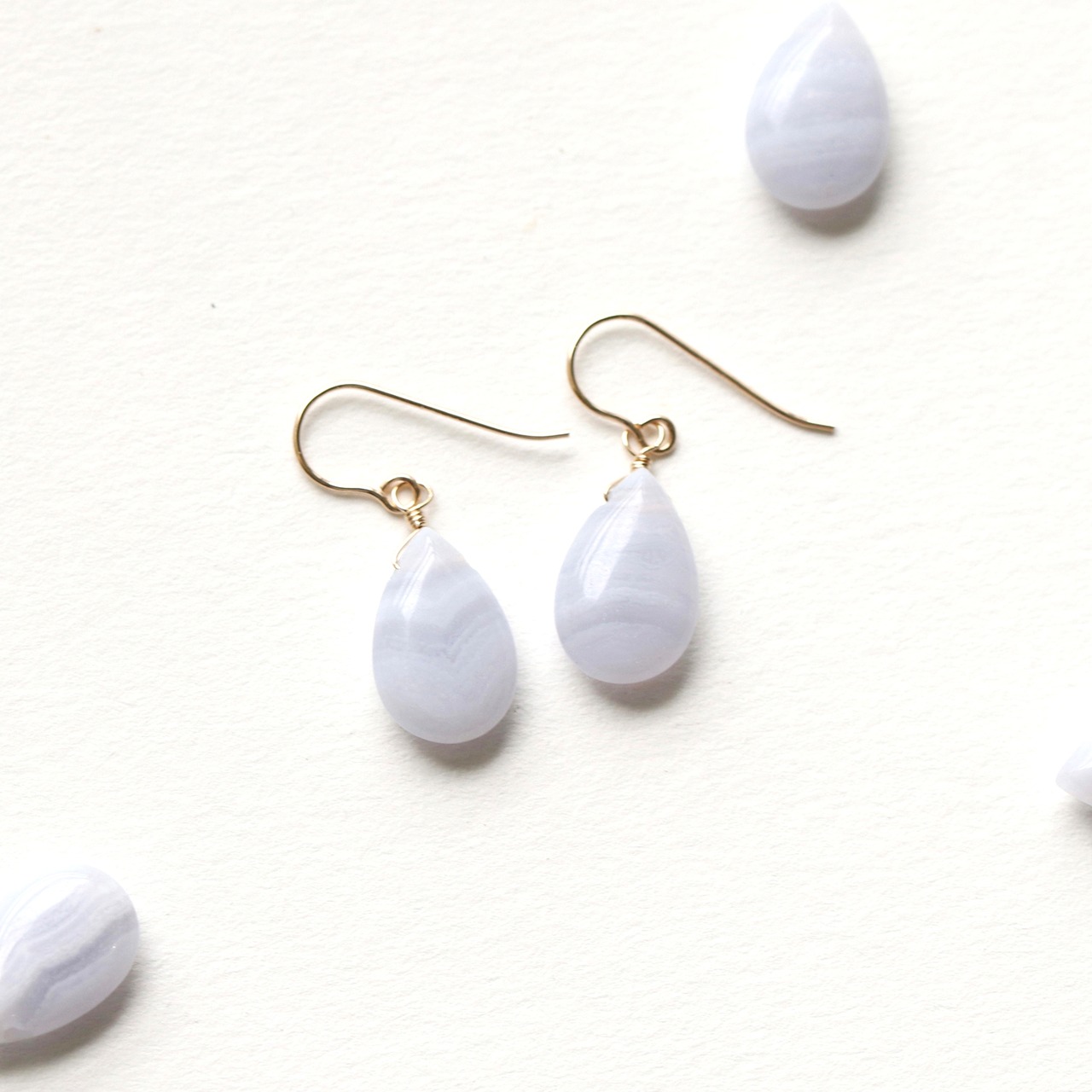 14Kgf ブルーレースアゲート ピアス/イヤリング --Angelic--