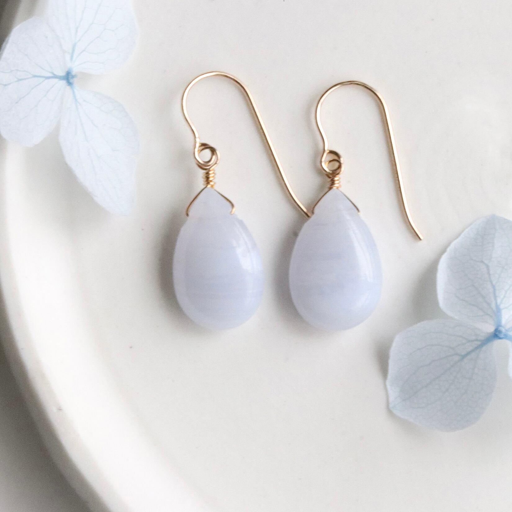ブルーレースアゲート ピアス 天然石 水色 揺れる ピアス 14Kgf ピアス 上品 シンプル ピアス 大人 アクセサリー 涼しげ ピアス 夏 ピアス プレゼント 女性 イヤリング変更可能 金属アレルギー対応 ピアス 青 ピアス 小ぶり 揺れる 上品
