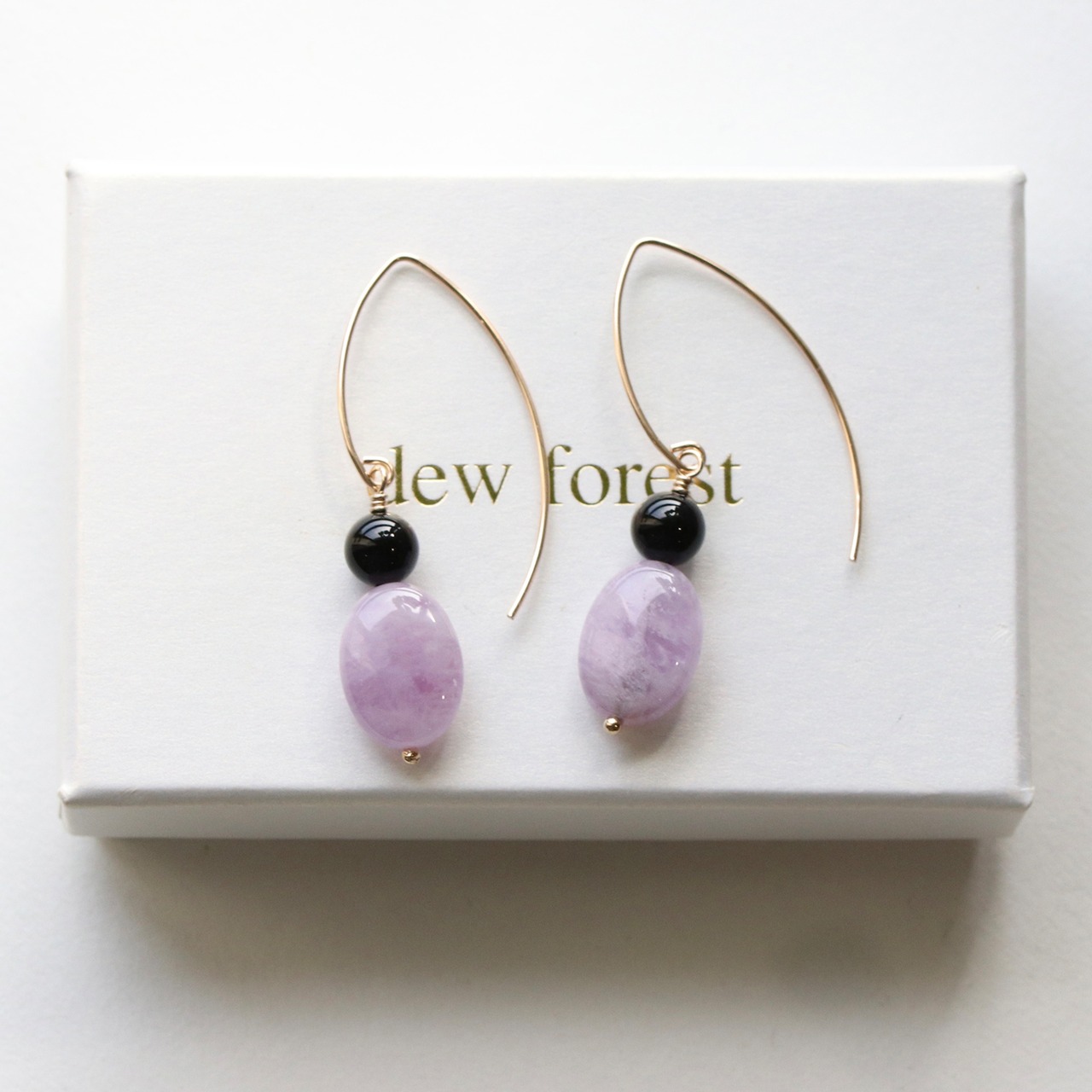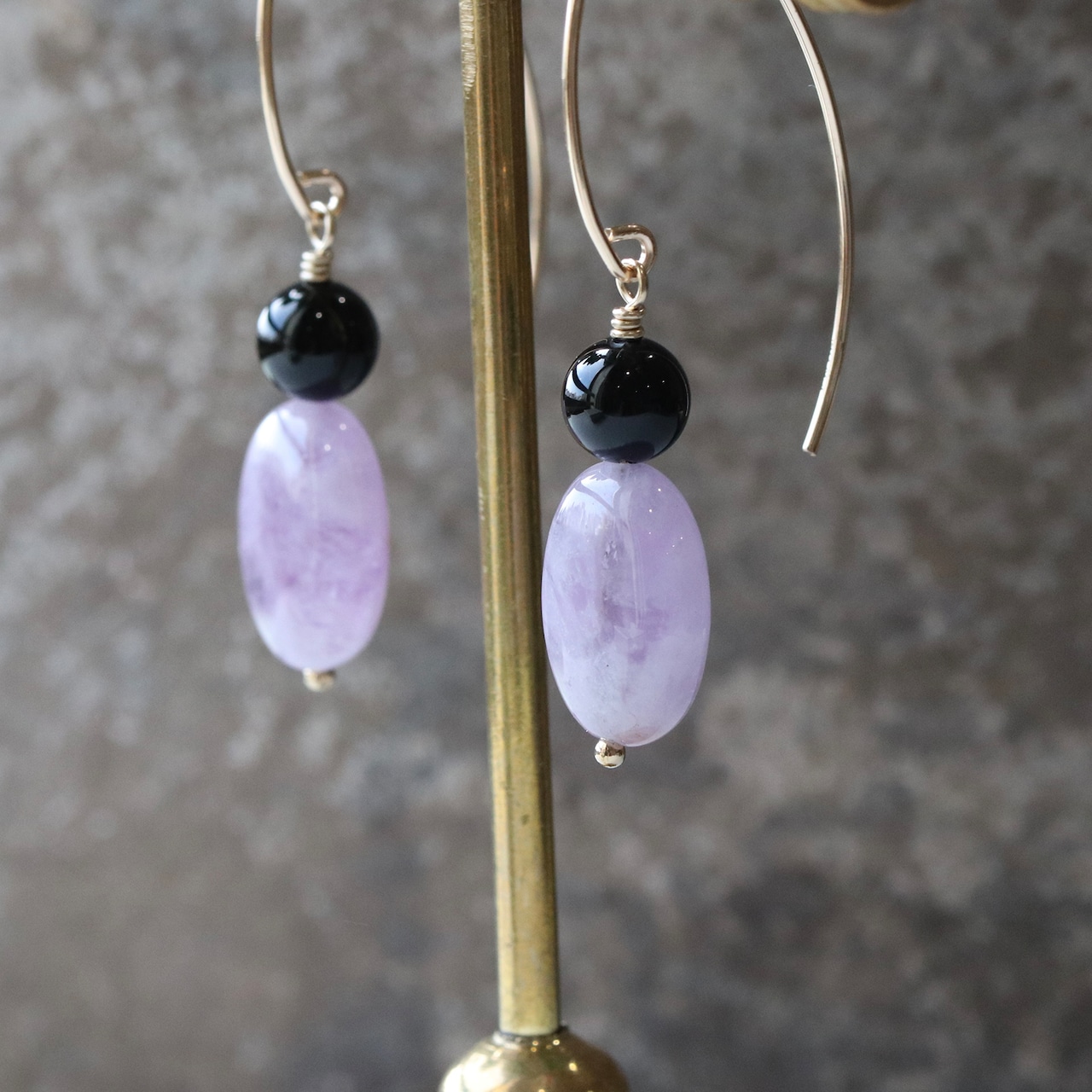 大粒 ラベンダーアメジスト+オニキス 天然石 14Kgfピアス/イヤリング --Lavender perfume--