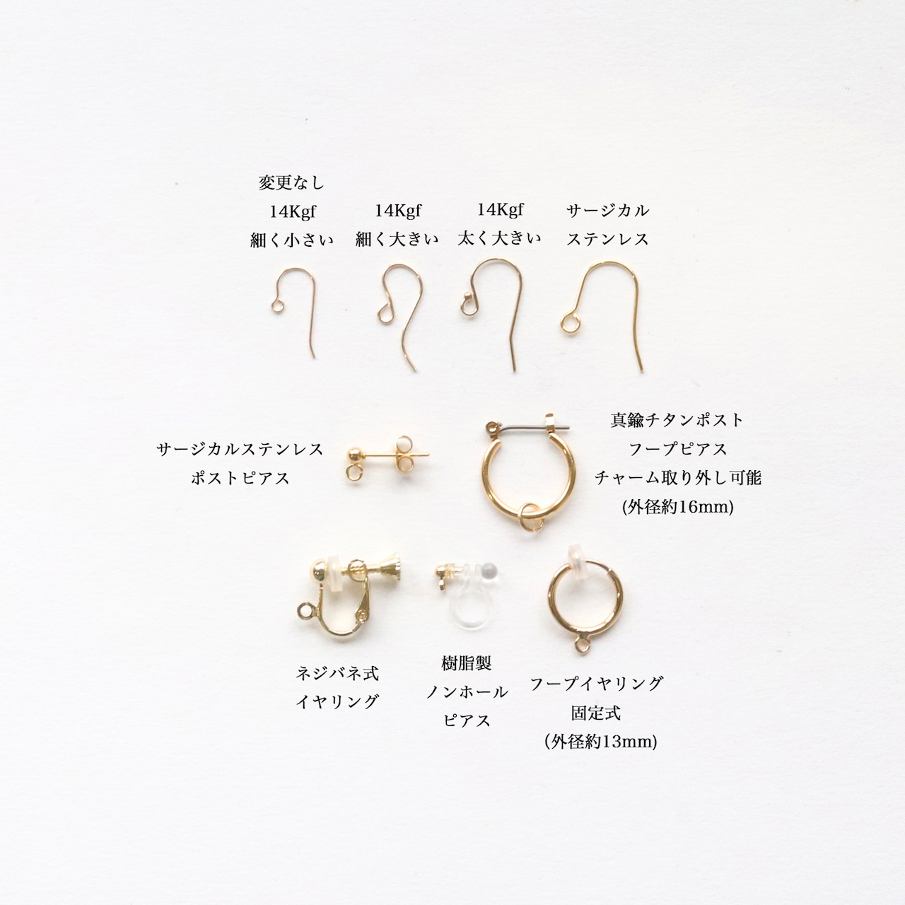 サージカルステンレス:フックピアス(ニッケルフリーメッキ)