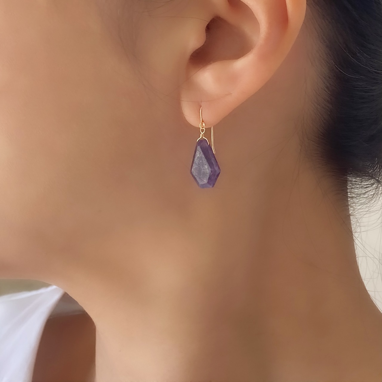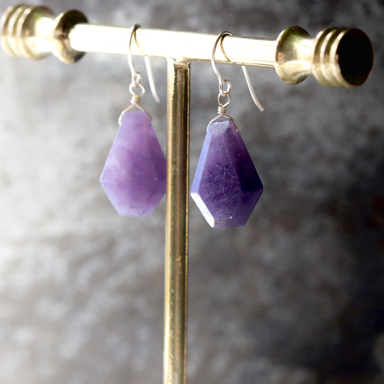 インド ジャイプールの石屋さんにオーダーして綺麗な原石から作ってもらいました。この濃くて綺麗な紫のレピドライトは珍しいと思います。