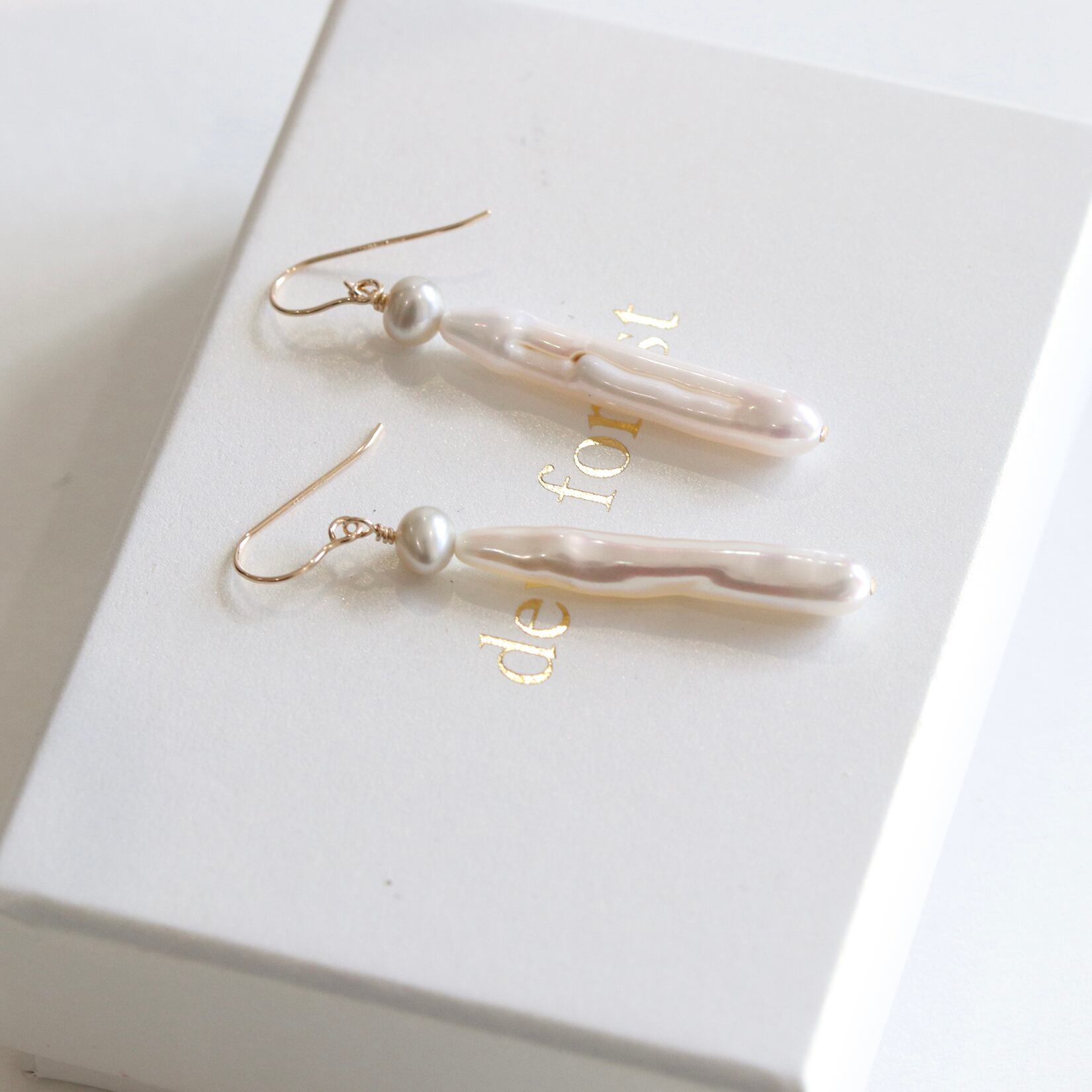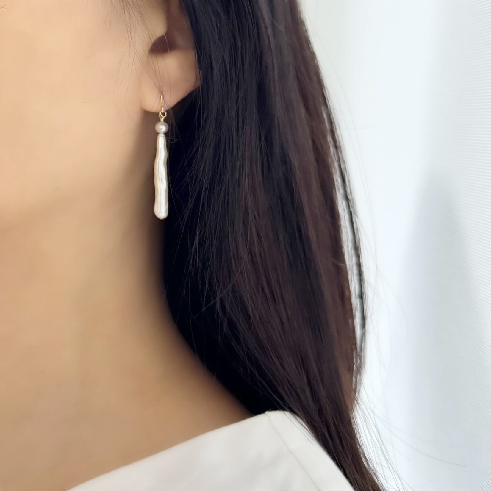 ステイック形状の淡水真珠に小粒のシルバーグレーの淡水真珠を合わせました。