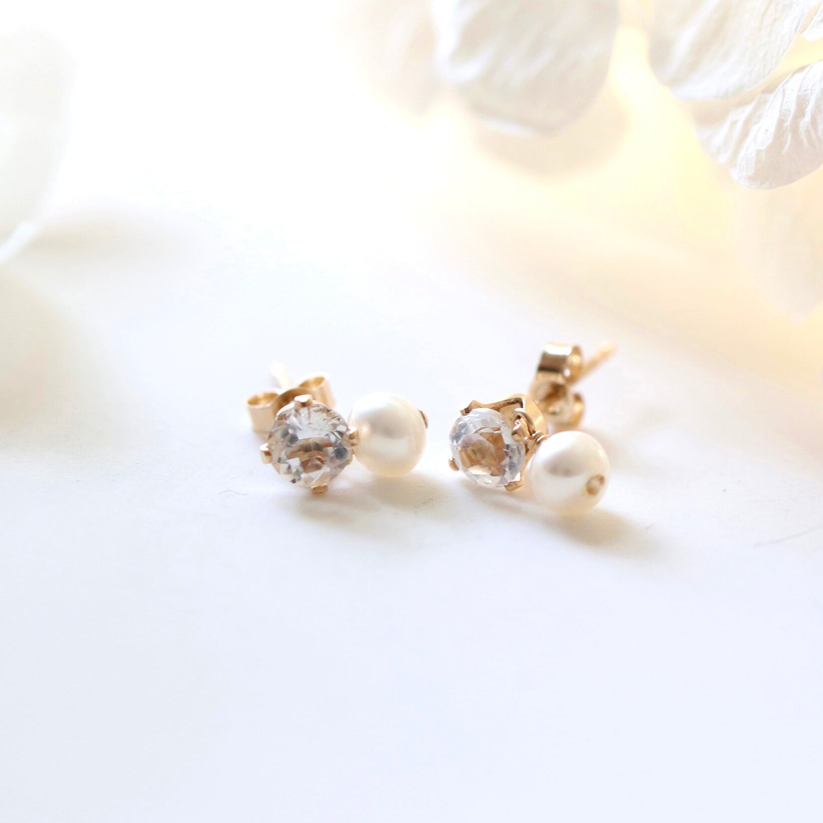 小さな輝き クリスタル×淡水パール ピアス|14Kgf|フォーマル・仕事用 —Tiny shine—