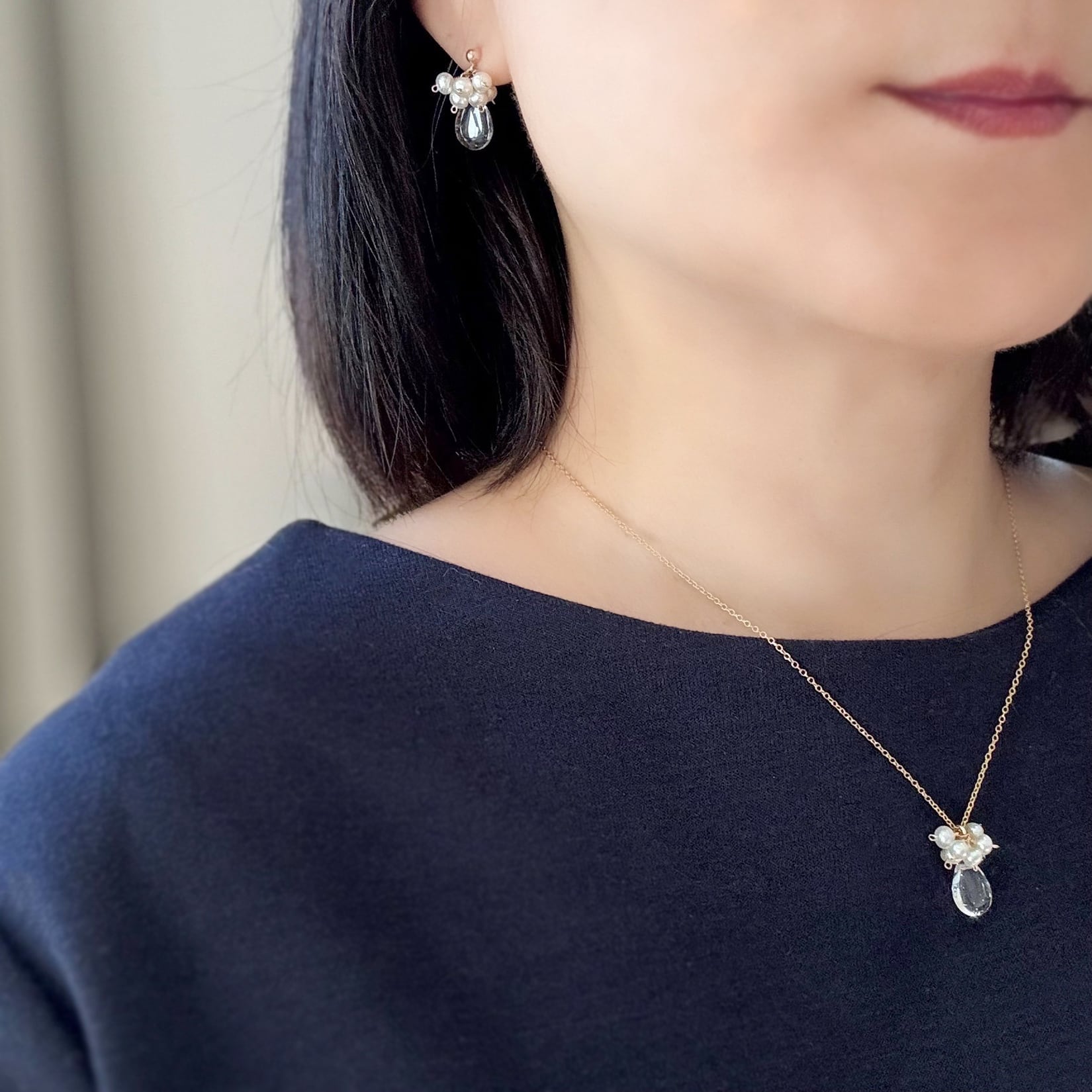 クリスタルクォーツ × 淡水パール 雫ピアス(イヤリング) 14Kgf / アレルギー対応 — Anniversary