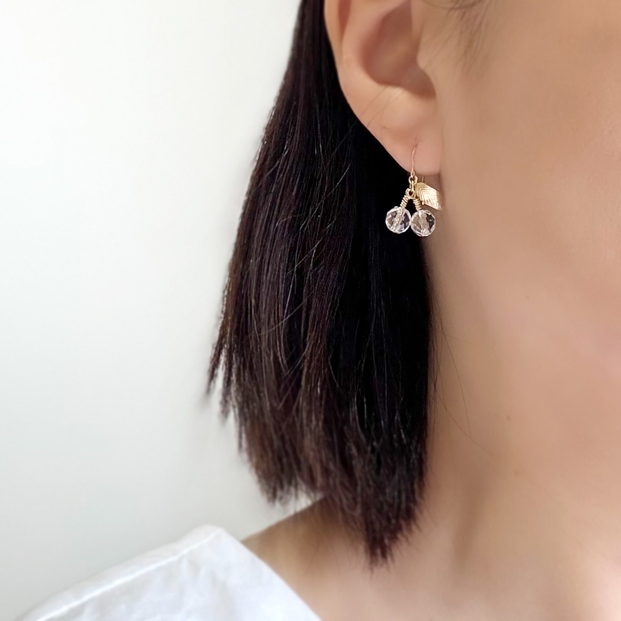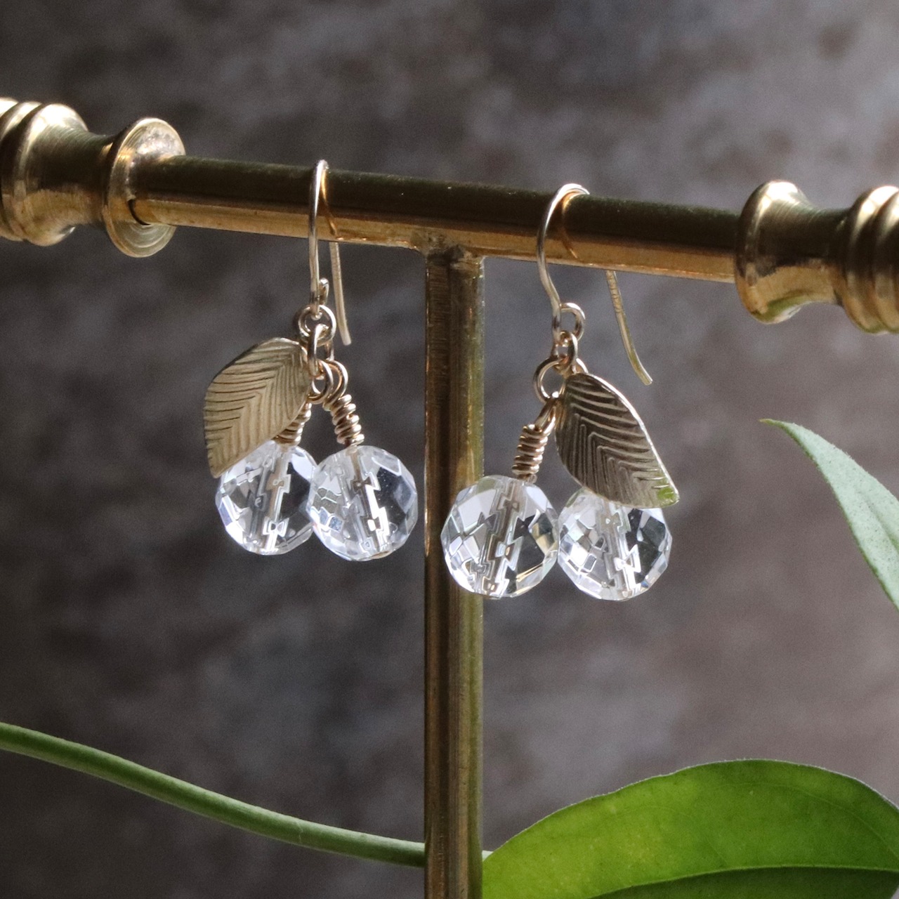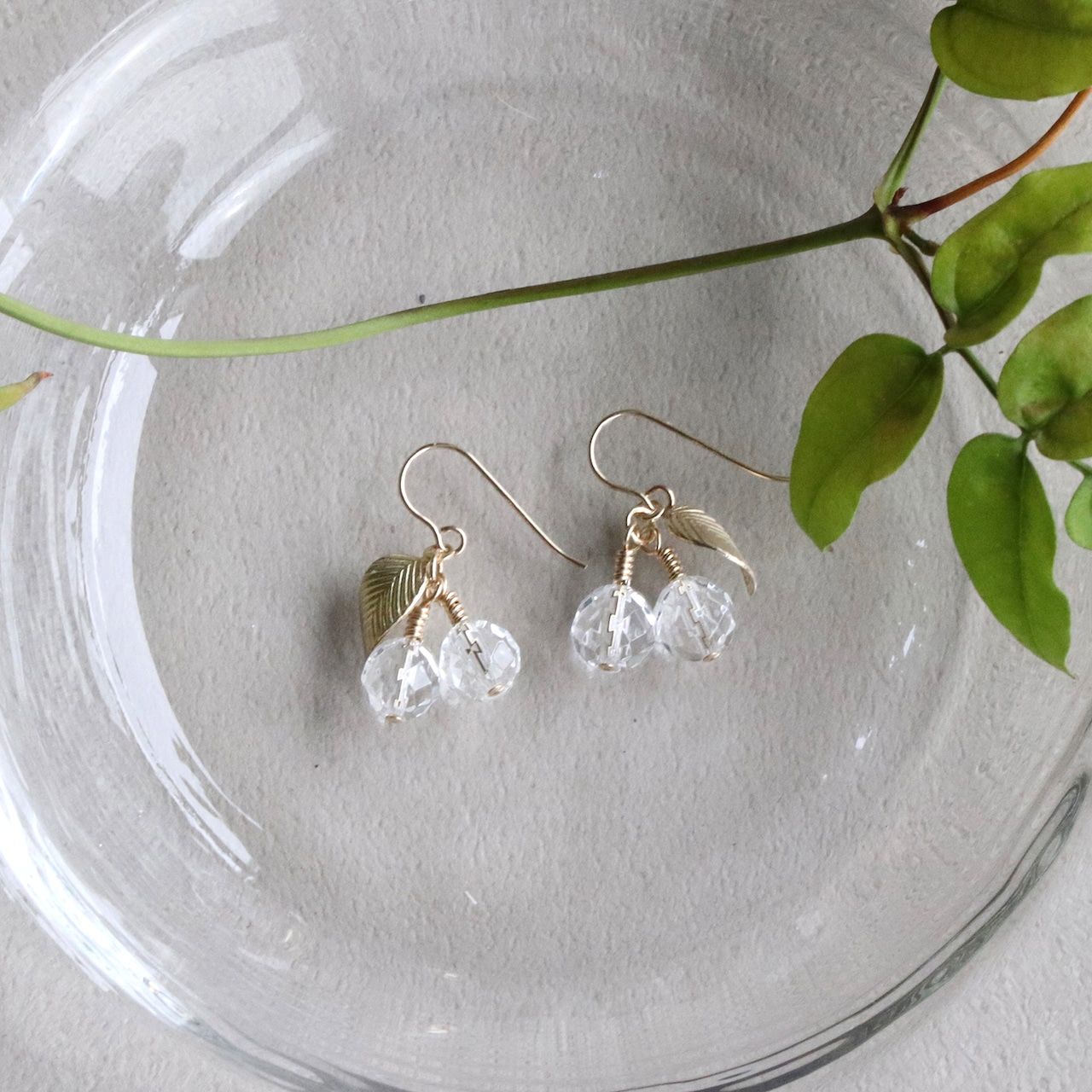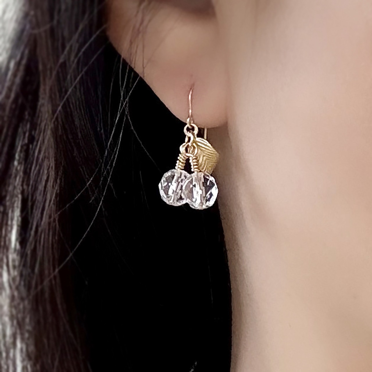 さくらんぼピアス 天然石クリスタルクォーツ 14Kgf アレルギー対応 --Sweet cherries--