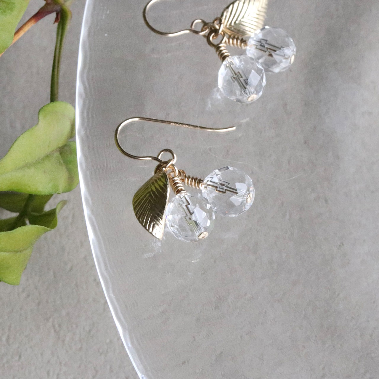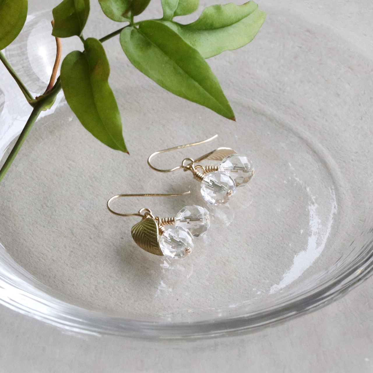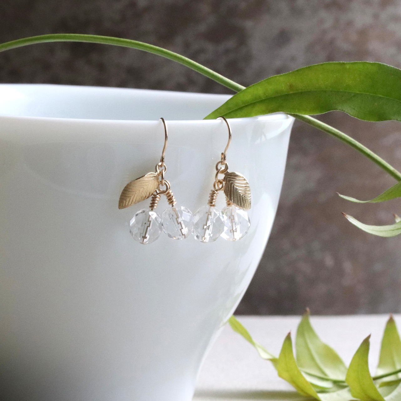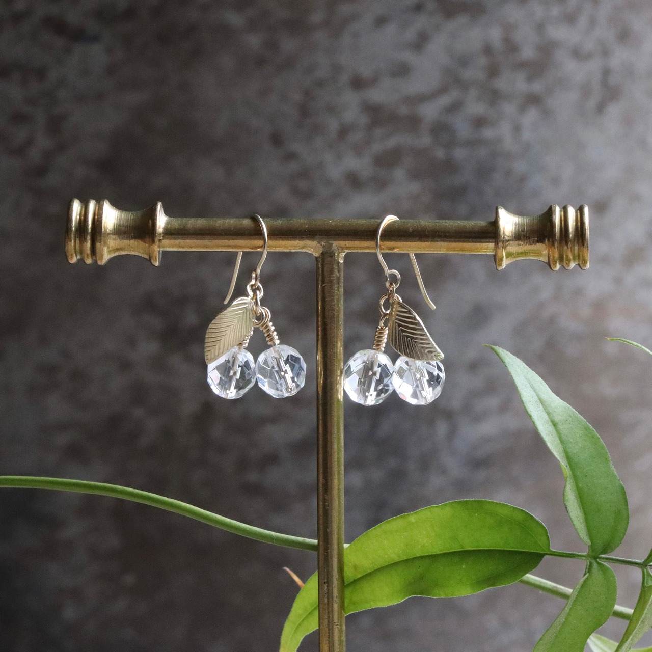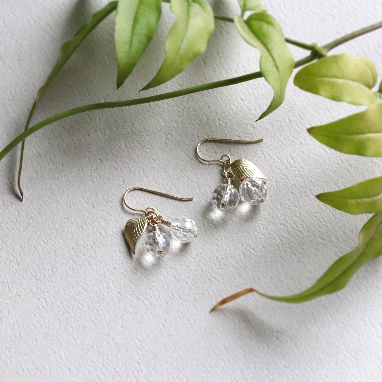 さくらんぼピアス 天然石クリスタルクォーツ 14Kgf アレルギー対応 --Sweet cherries--