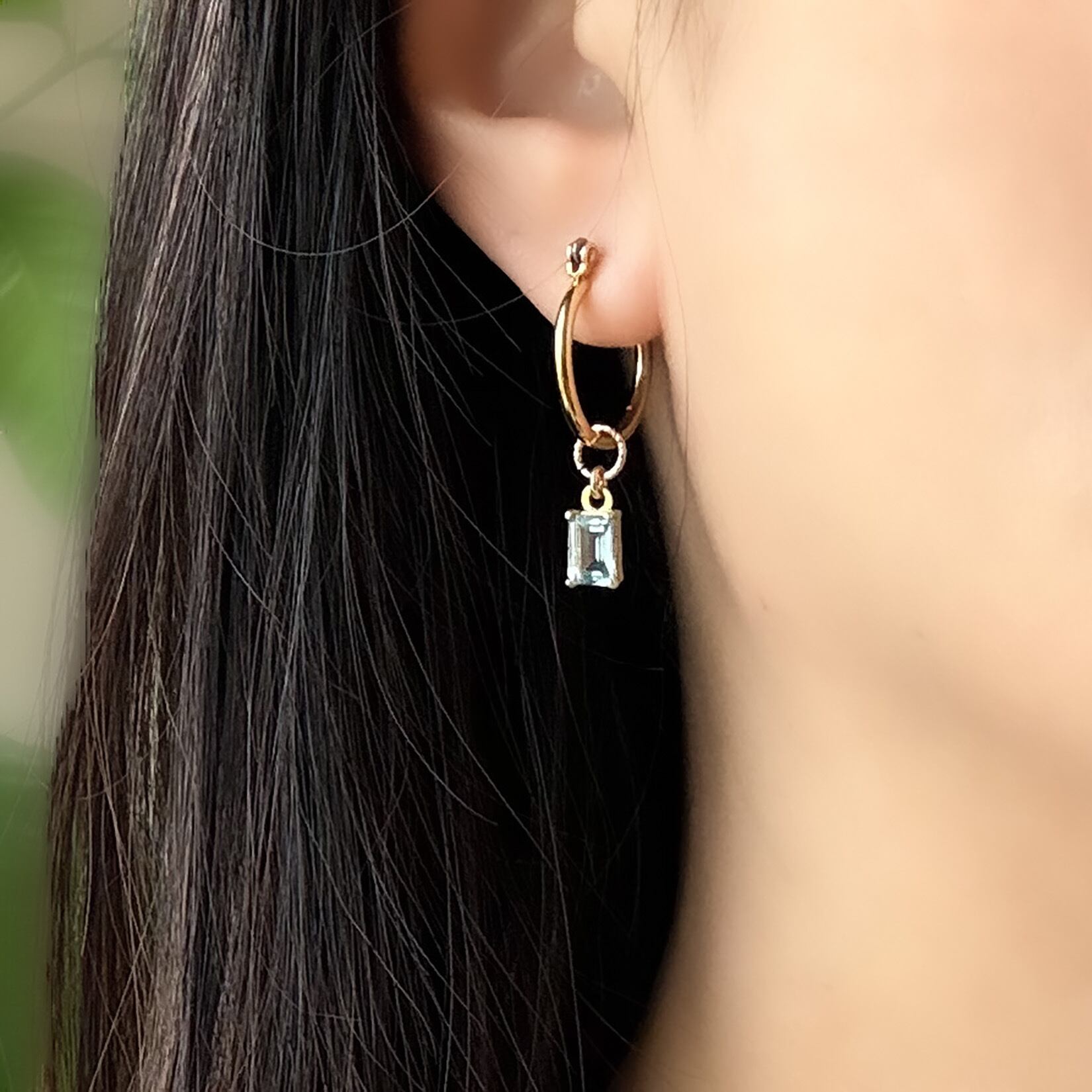 宝石質スカイブルートパーズ 天然石チャーム3点+チタンフープピアス — Dress up —