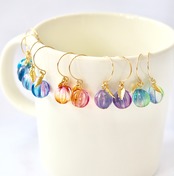 こちらのビーズは、表面がつるんとしていなく縦にでこぼこの筋が入っているビーズです。どれも2色の色が入っています。ビー玉のようなキャンディーのような色と形がとても可愛らしいビーズです。