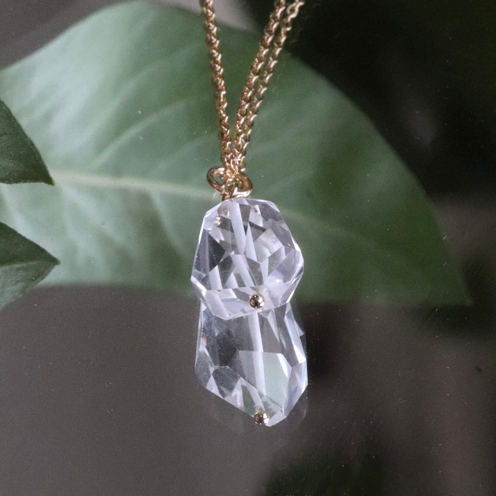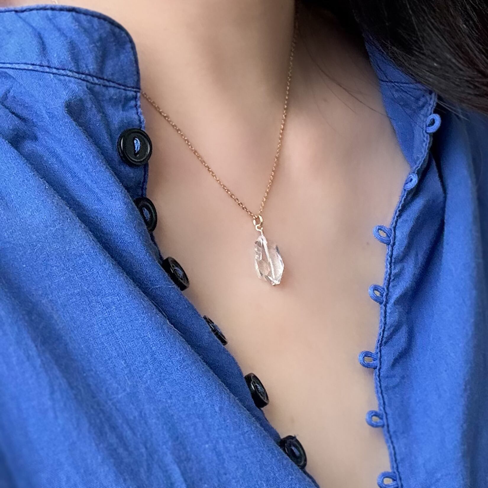 無色透明なシンプルな天然石ネックレスは、夏にぴったり。色々なコーデに合わせやすく、お手持ちのチェーンがありましたら、重ね付けしても素敵です。