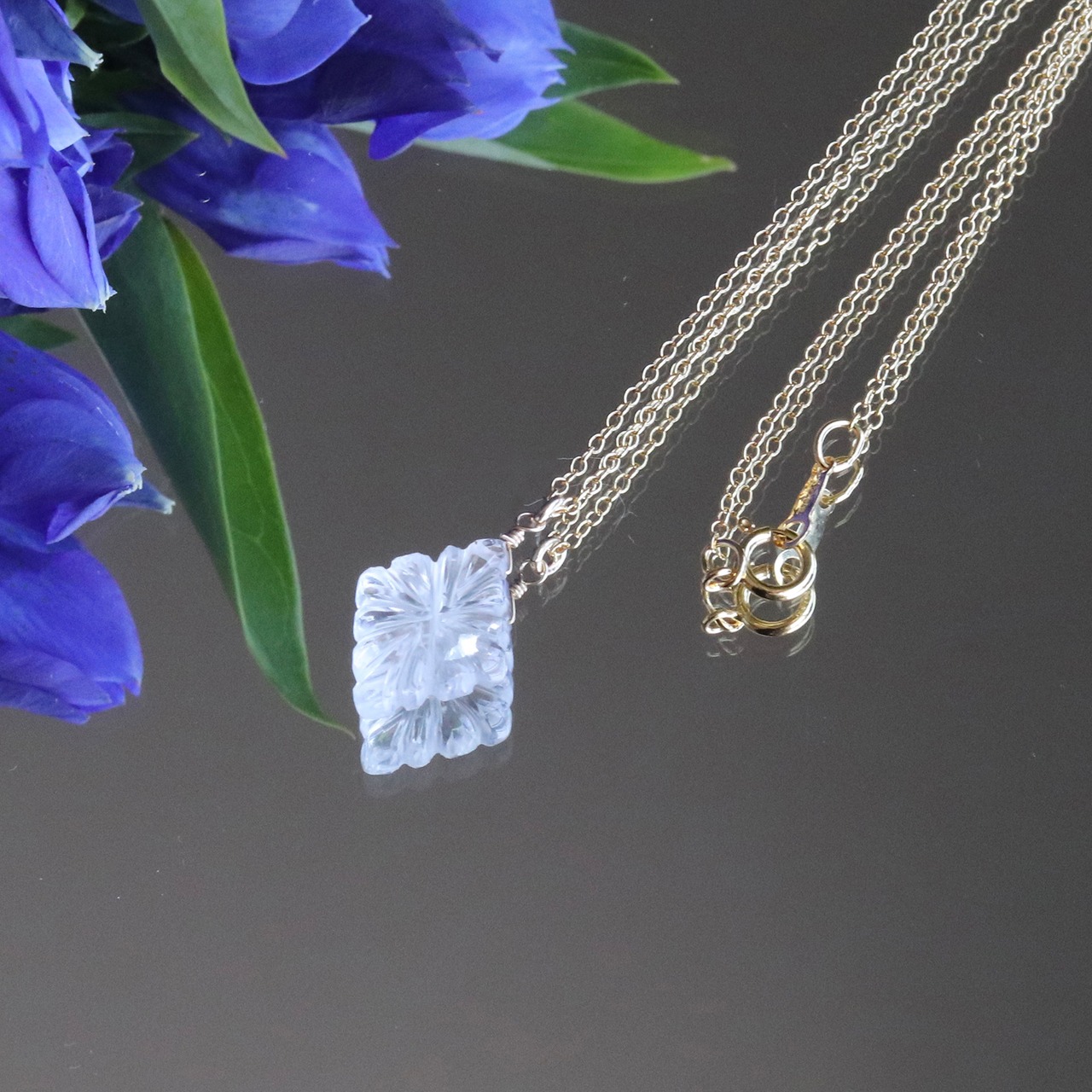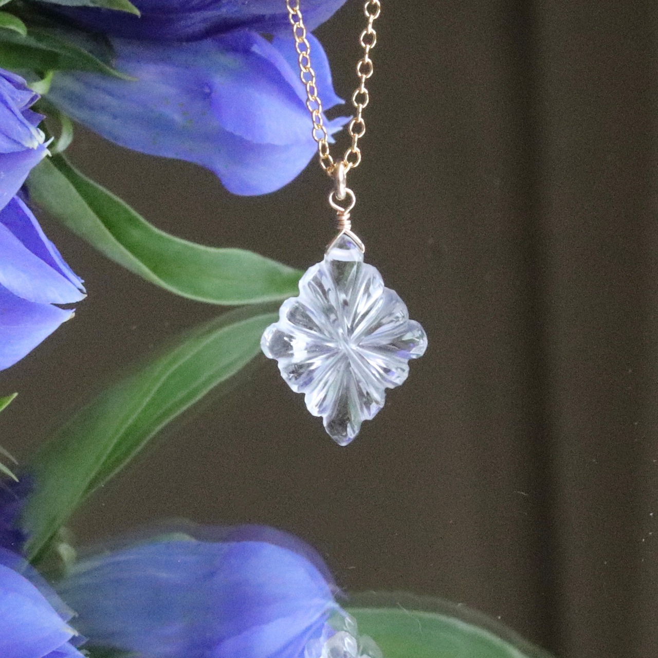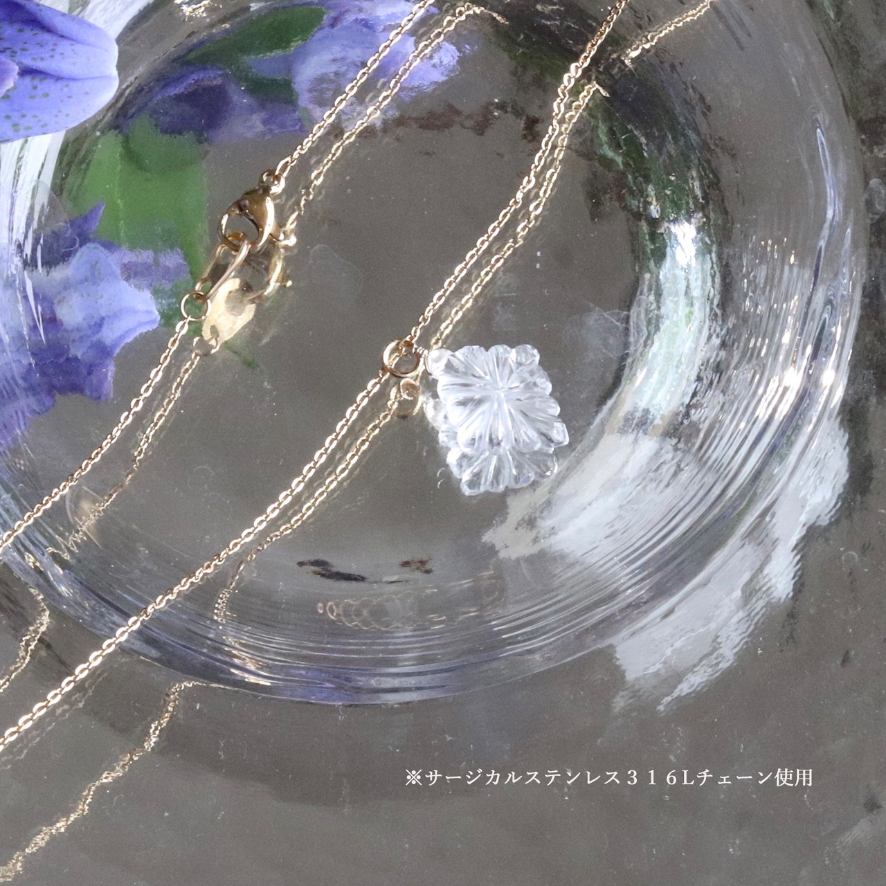 クリスタルクォーツの菱形にカービングを施した上品なネックレス