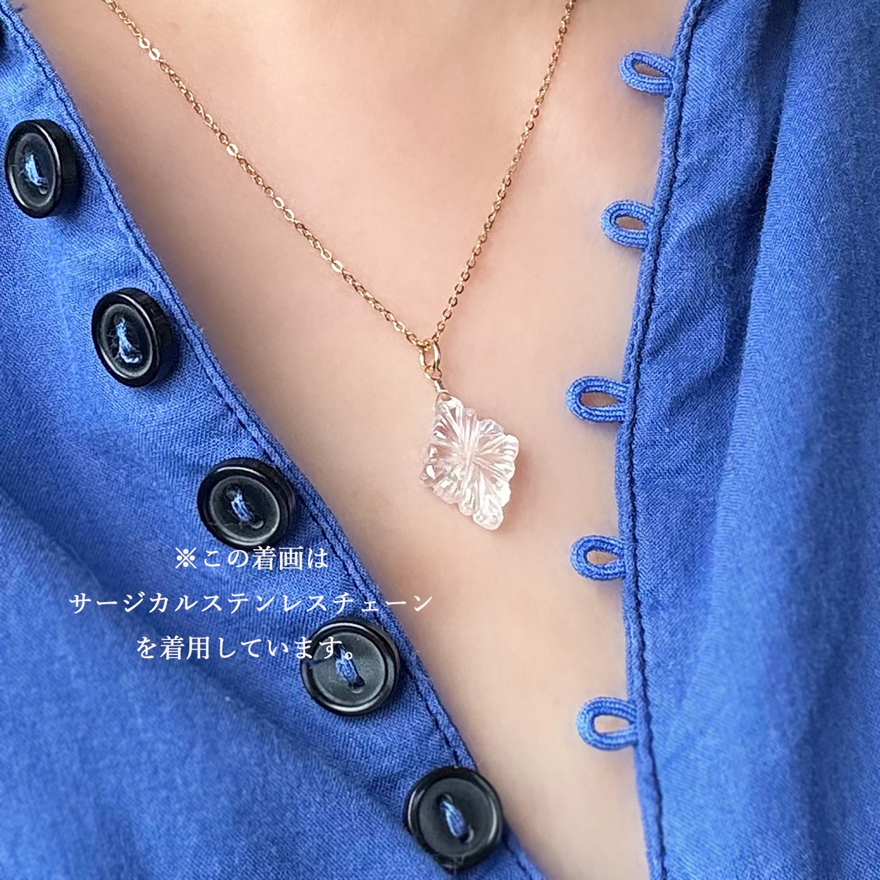アレルギー対応の14Kgfのネックレスチェーンを使用。石を引き立てる細いチェーンを使用しています。