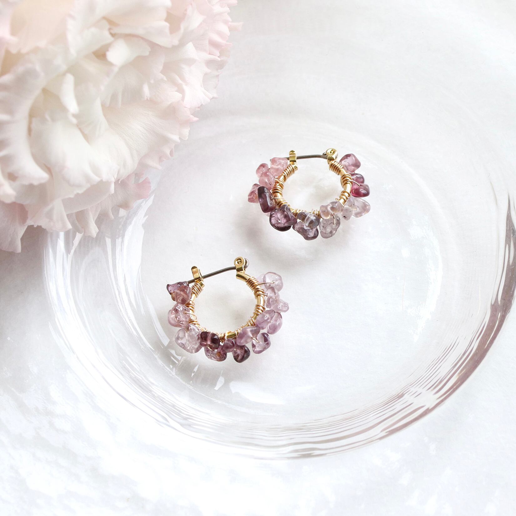 スピネル くすみカラー フープピアス/イヤリング|天然石 チタンポスト 8月誕生石 — Luxe —
