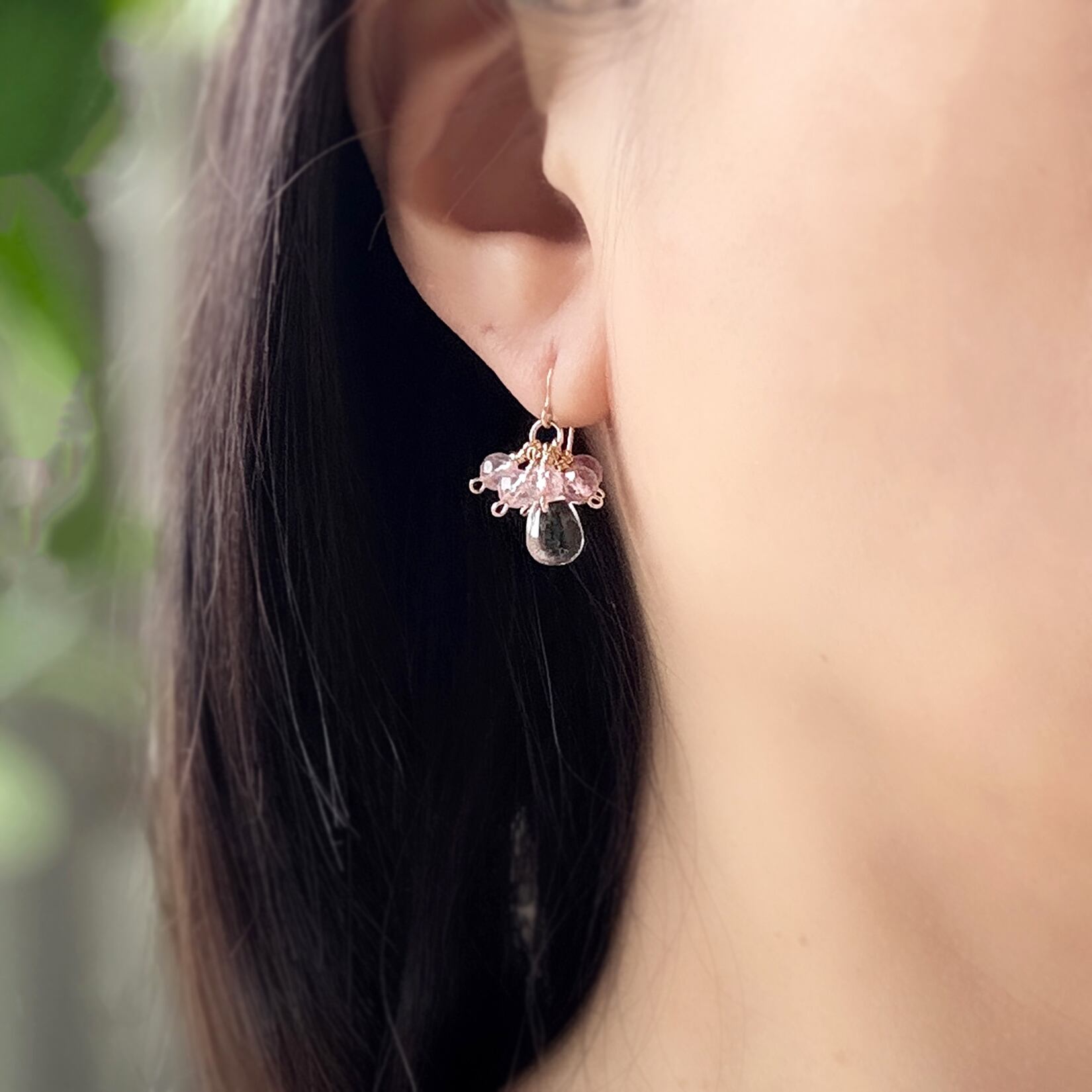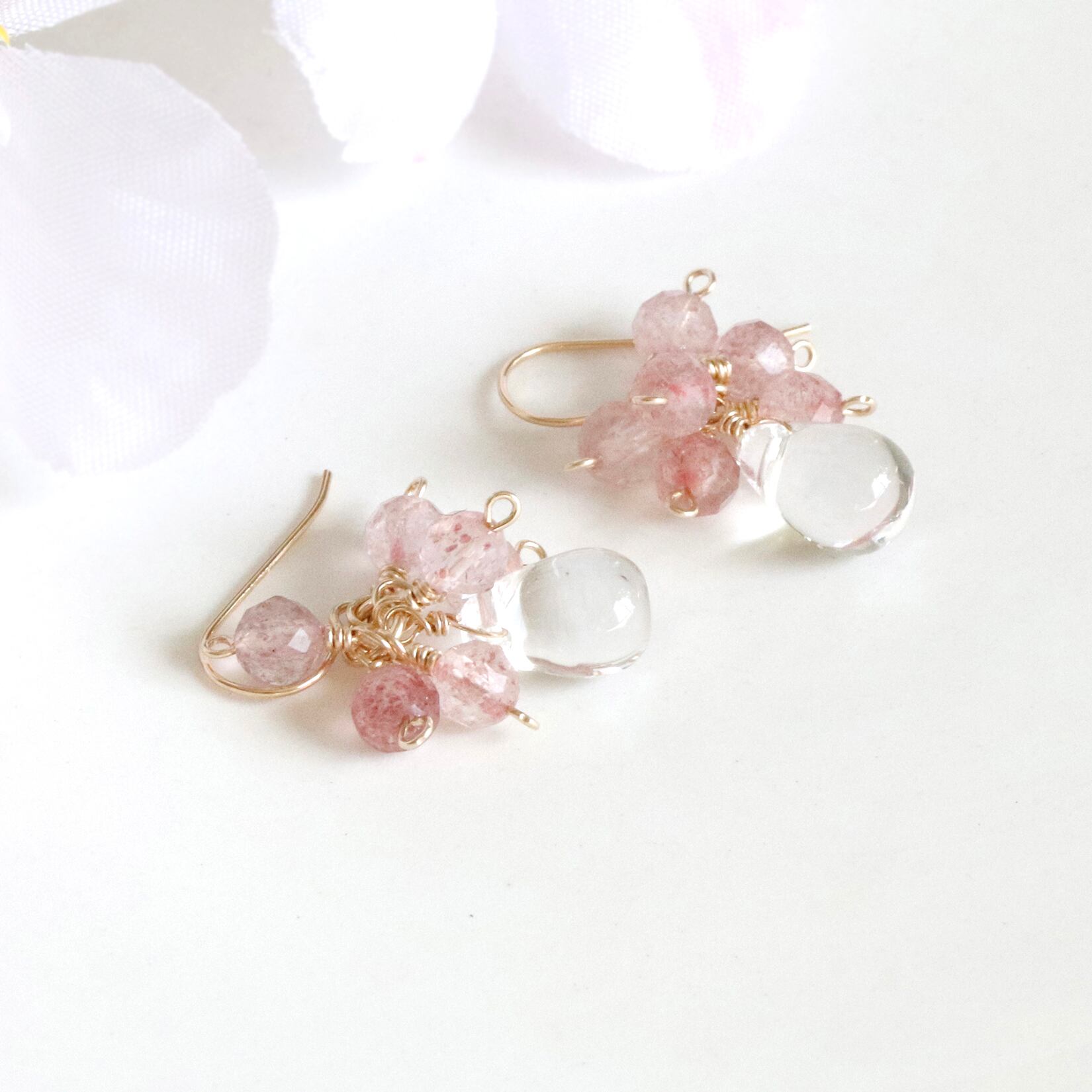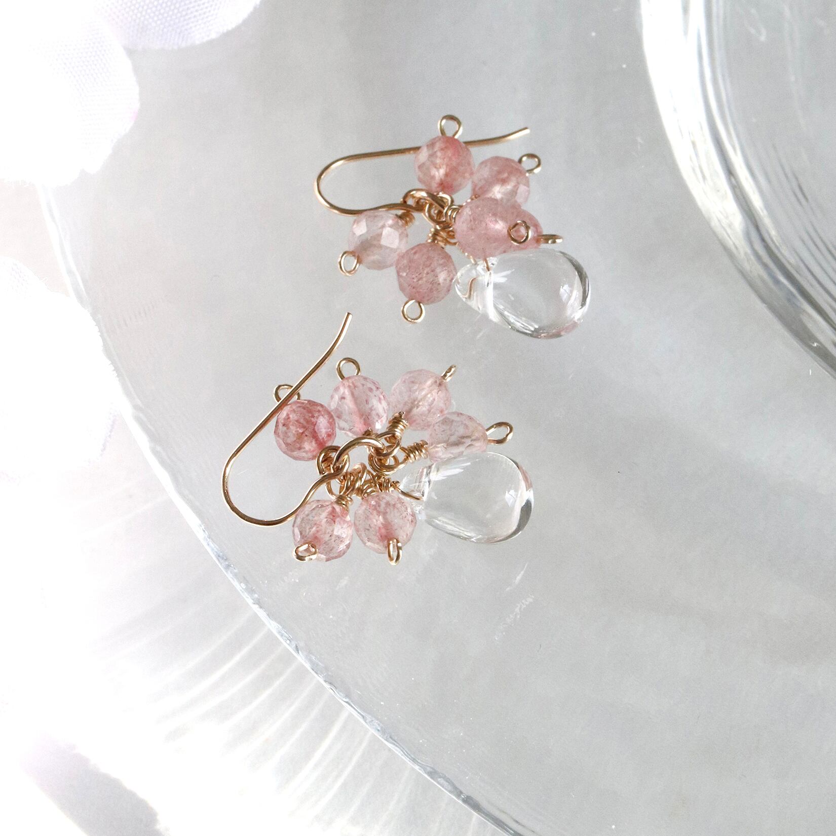 桜色 ピンクエピドート×クリスタルクォーツ ピアス/イヤリング 14Kgf —Sakura fairy—